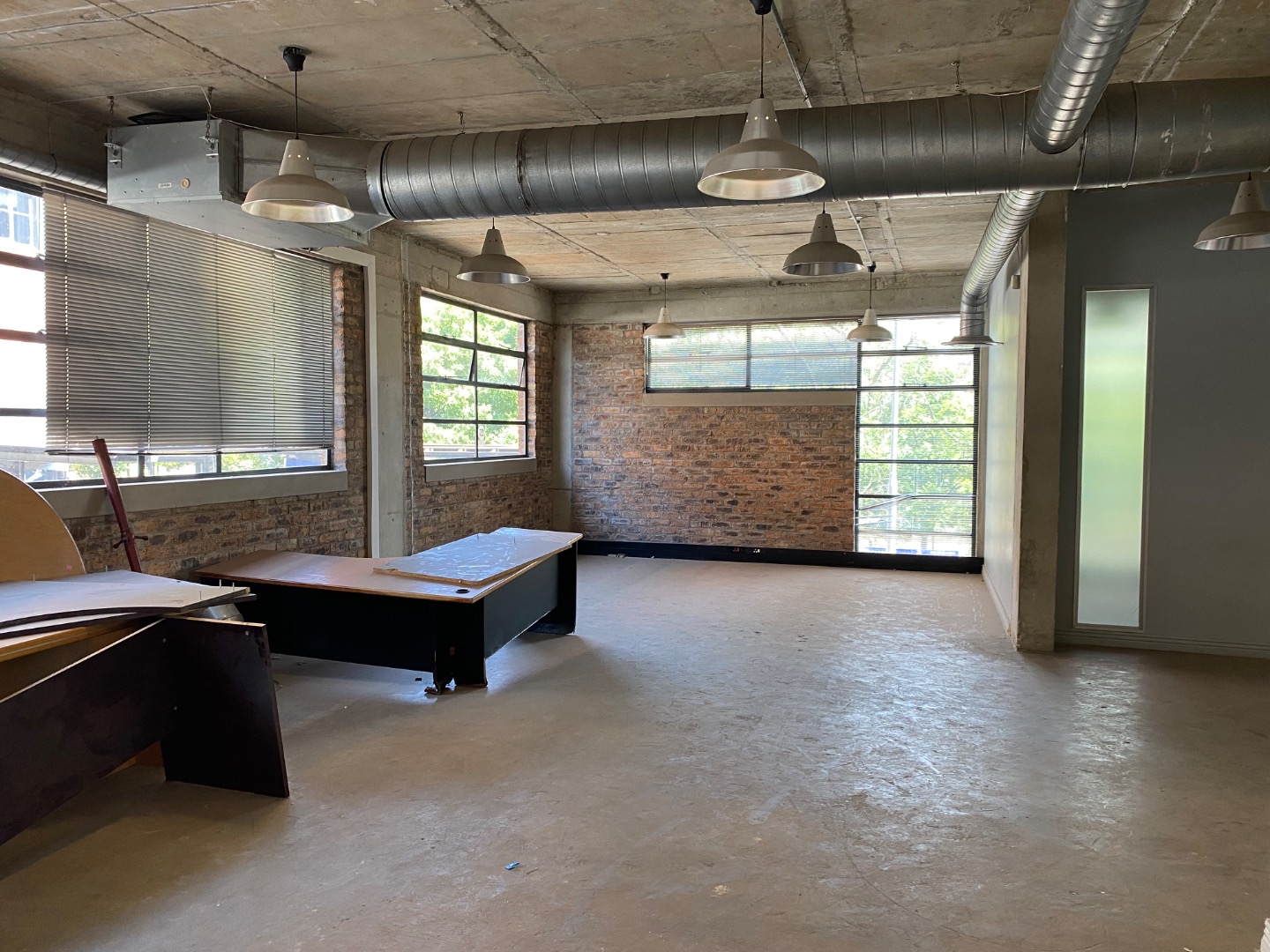 Discover a versatile 185sqm commercial rental opportunity in the vibrant metropolitan hub of Milpark, Johannesburg. This spacious unit boasts a distinctive industrial aesthetic, featuring high exposed concrete ceilings, and robust concrete columns that contribute to its unique character. Abundant natural light streams through large windows, illuminating the flexible open-plan layout, which also includes some existing partitioned rooms for varied business needs.