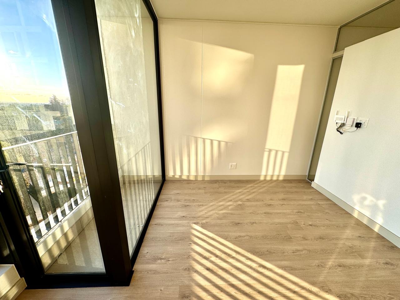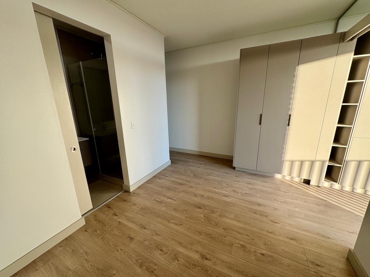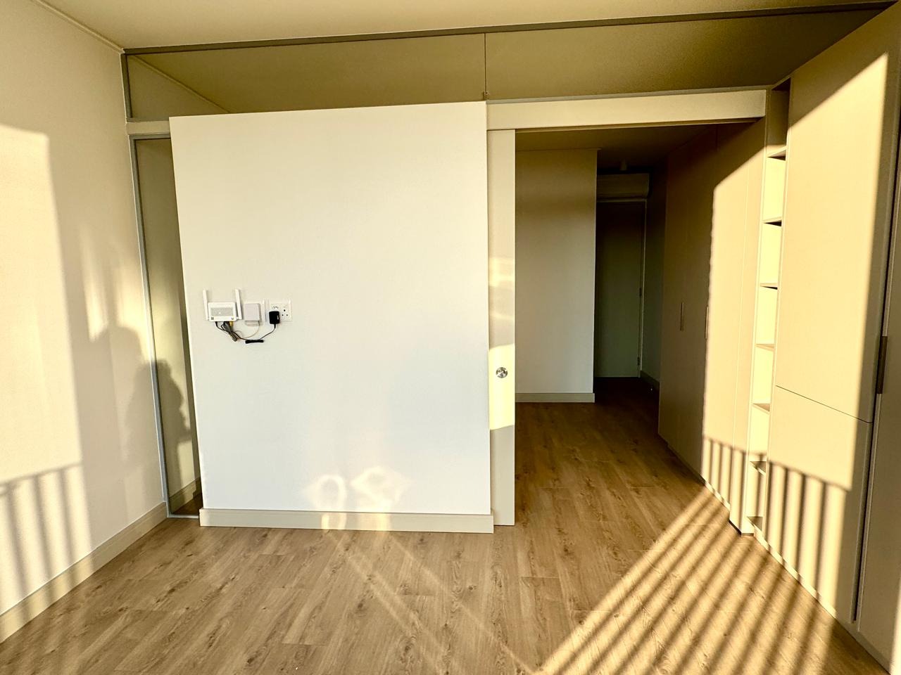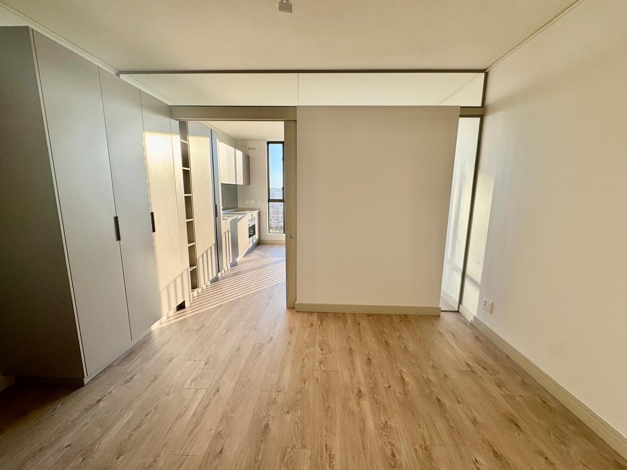 • Spacious studio layout with a slidable door to separate the bedroom and living area