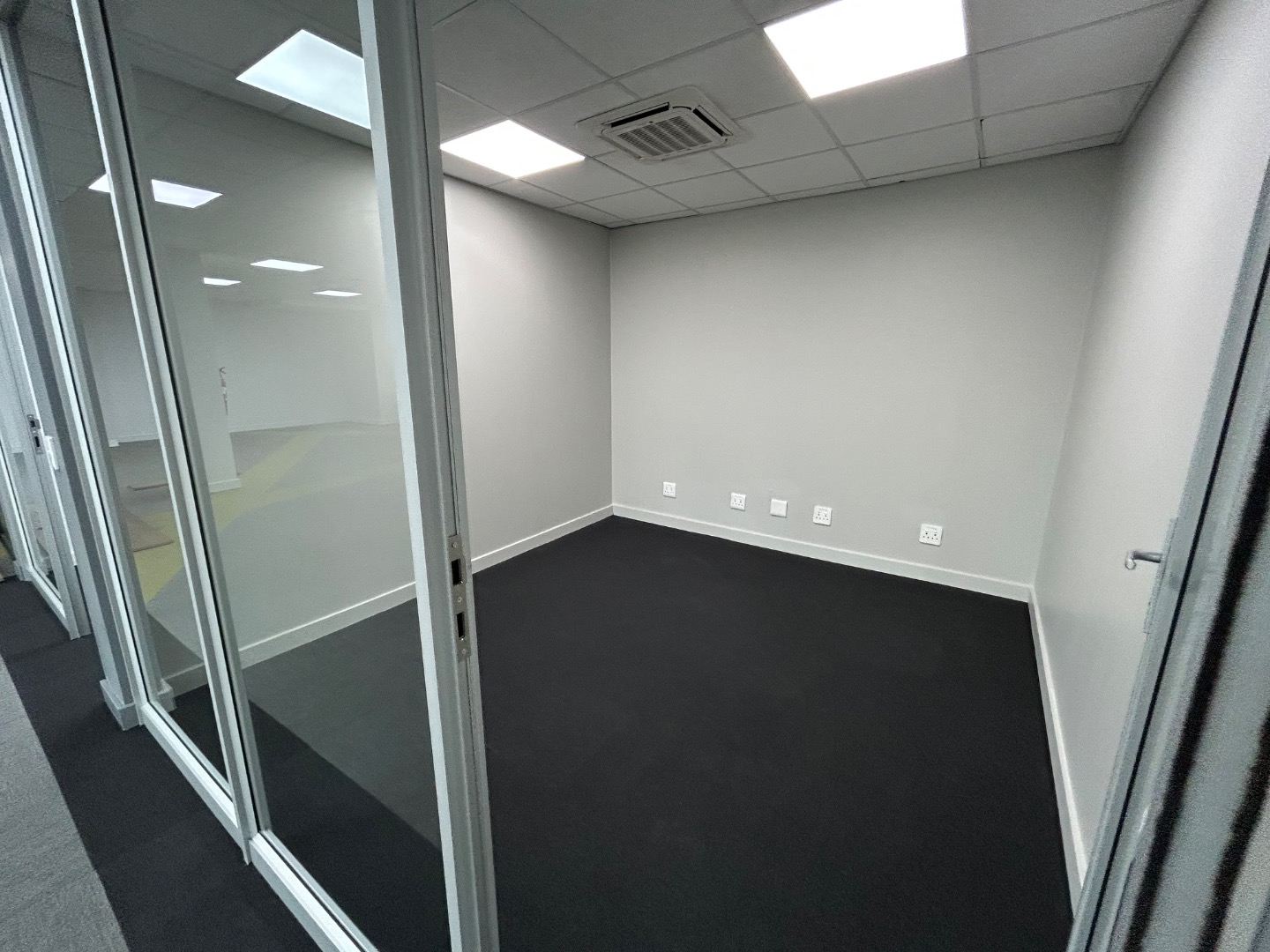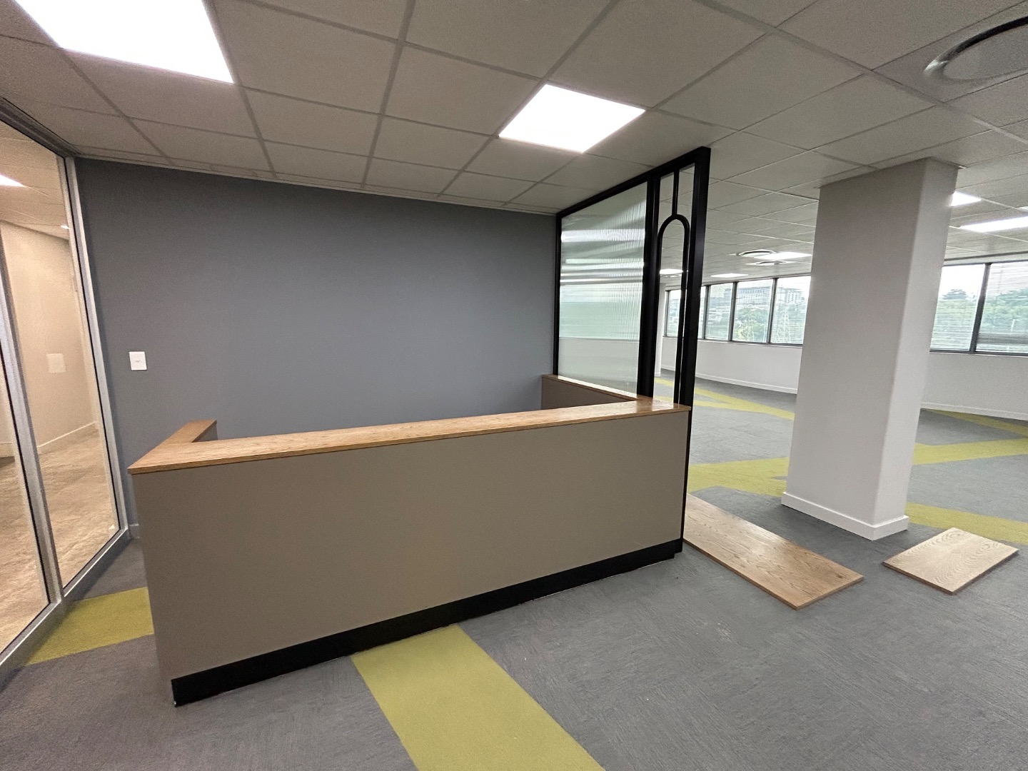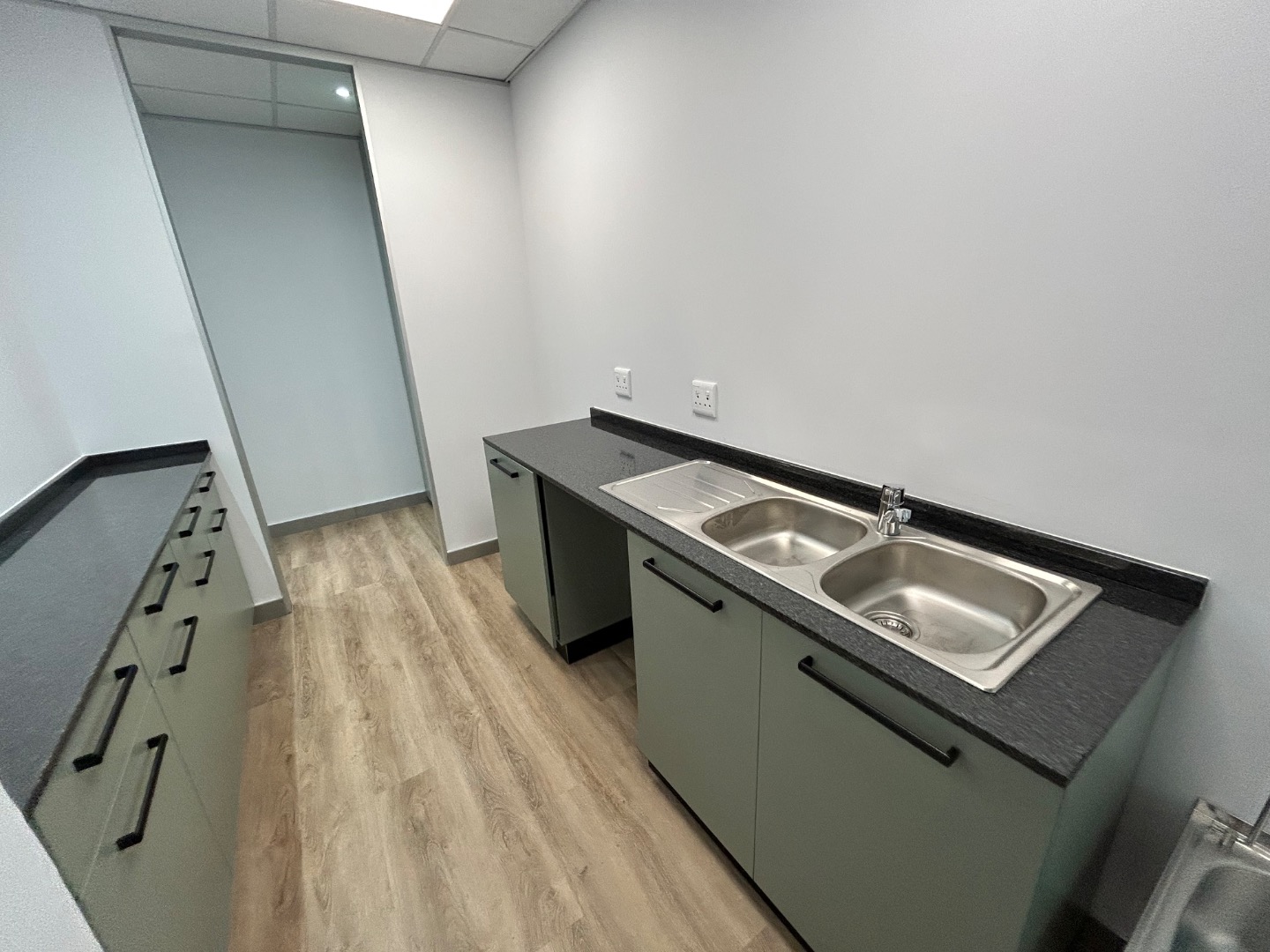 This exceptional 342 sqm commercial rental opportunity in Johannesburg offers a contemporary and highly adaptable workspace designed for modern businesses. The interior boasts spacious open-plan areas, complemented by sleek glass partitions that create private offices or meeting rooms while maintaining an airy, collaborative atmosphere. A dedicated reception area and a well-appointed kitchen enhance functionality, alongside two conveniently located bathrooms. The design features suspended ceilings with integrated lighting and ventilation systems, ensuring a comfortable and productive environment.