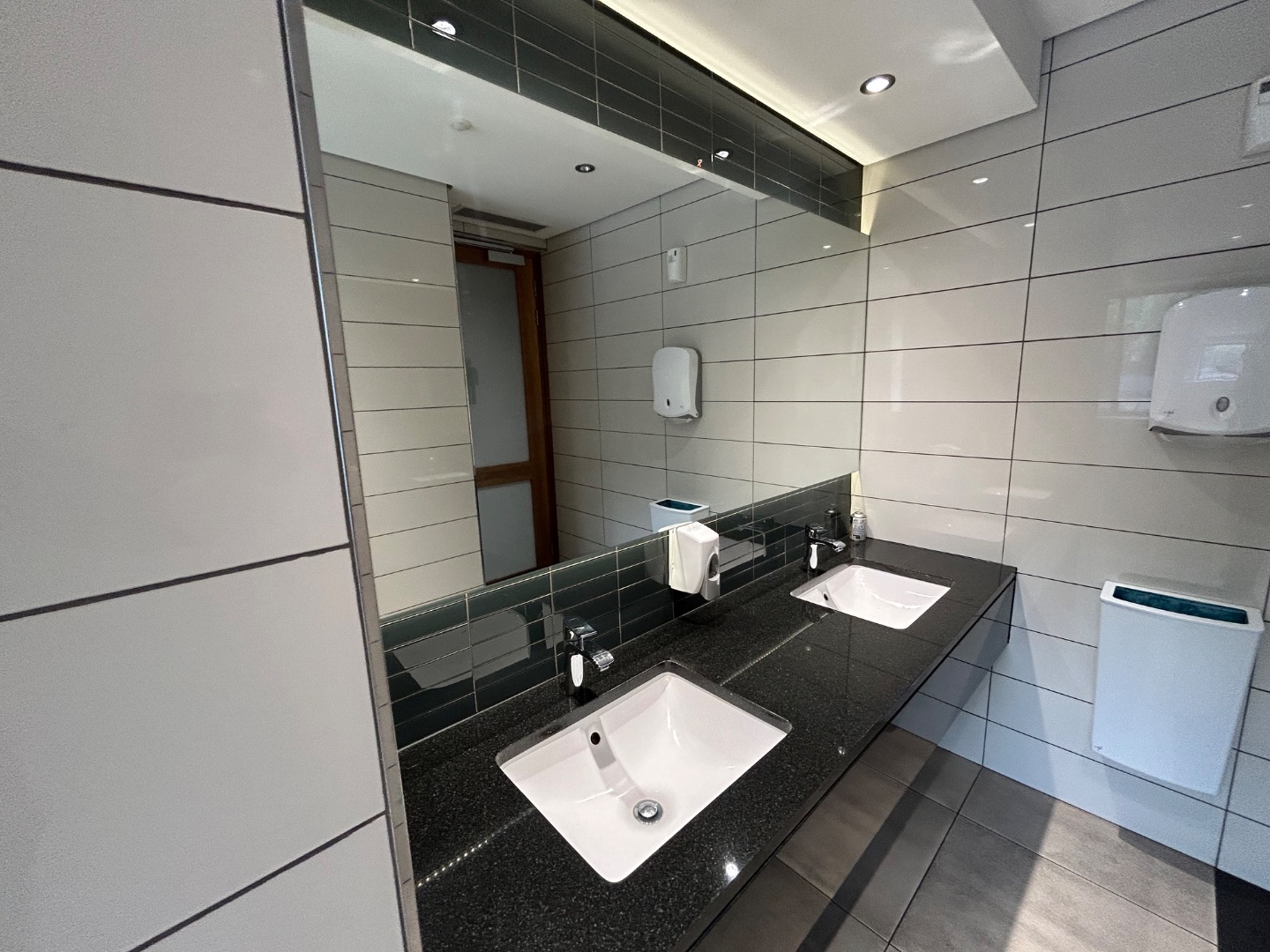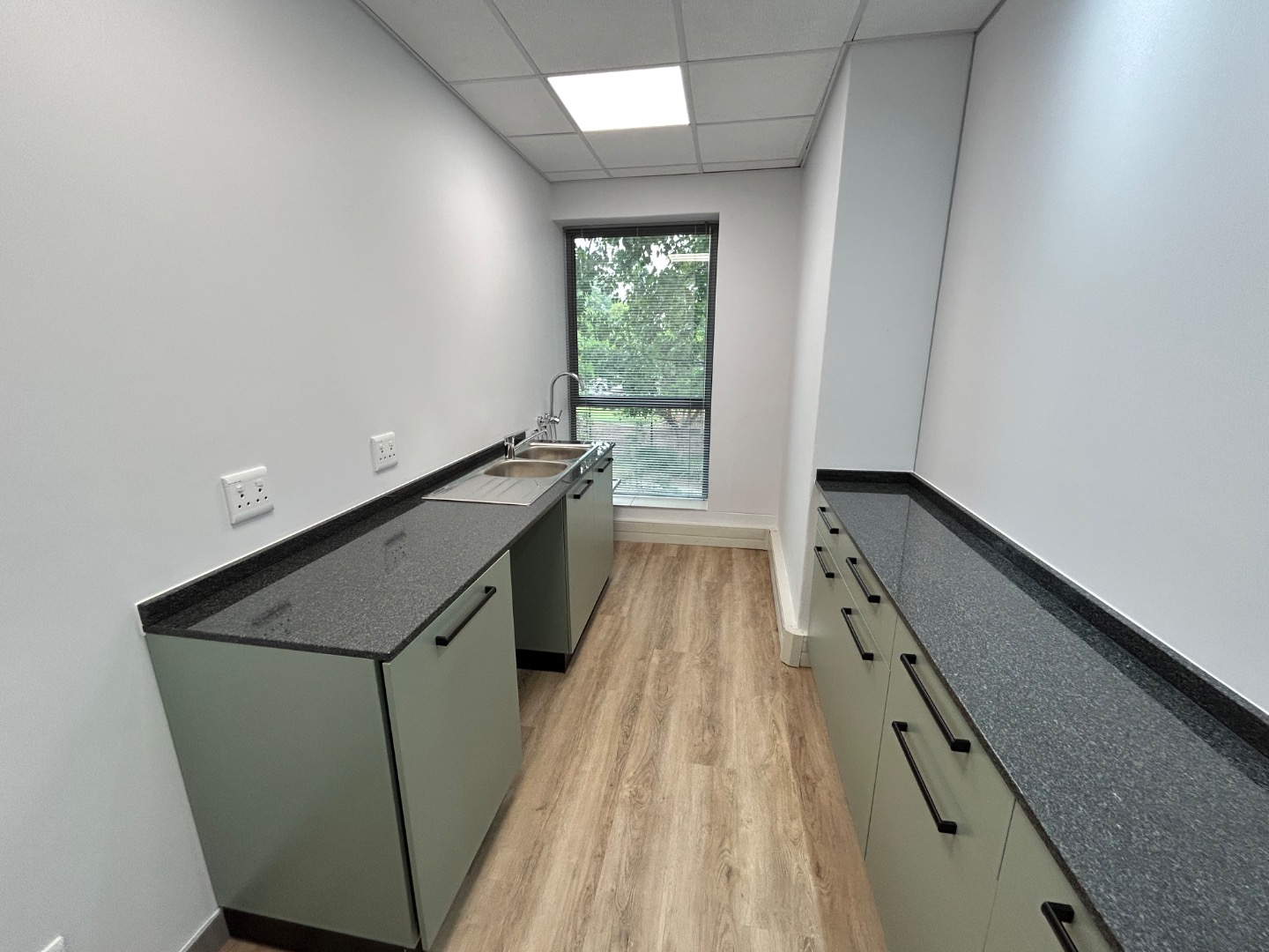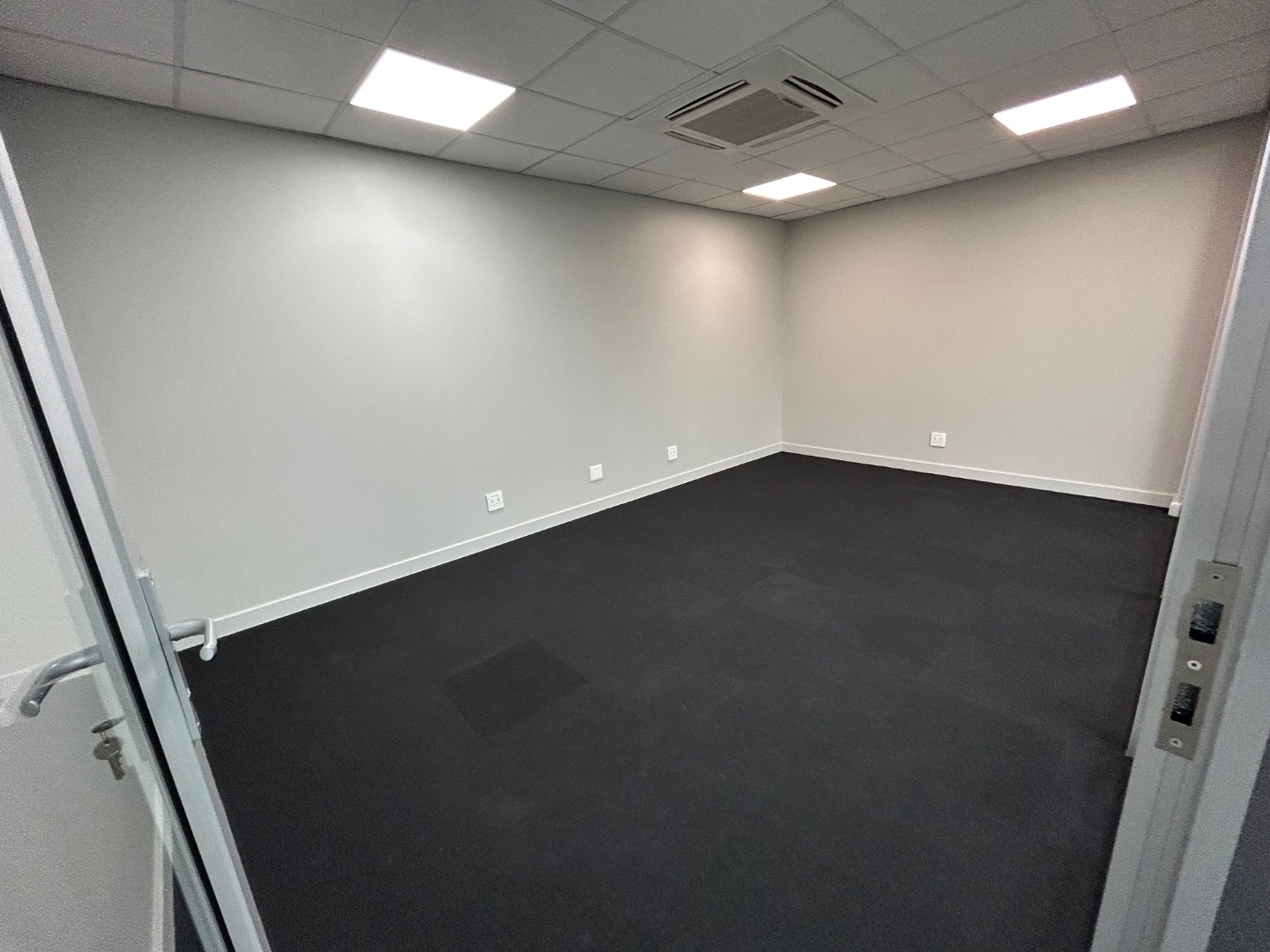 This exceptional 342 sqm commercial rental opportunity in Johannesburg offers a contemporary and highly adaptable workspace designed for modern businesses. The interior boasts spacious open-plan areas, complemented by sleek glass partitions that create private offices or meeting rooms while maintaining an airy, collaborative atmosphere. A dedicated reception area and a well-appointed kitchen enhance functionality, alongside two conveniently located bathrooms. The design features suspended ceilings with integrated lighting and ventilation systems, ensuring a comfortable and productive environment.