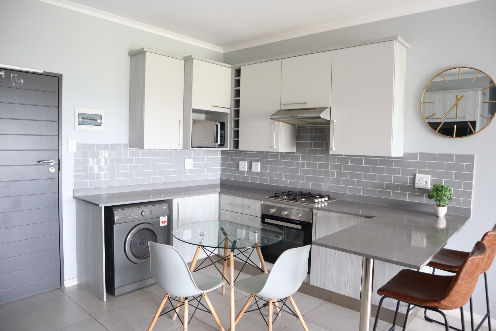 The apartment features a spacious open-plan living and dining area, tastefully furnished with contemporary décor that flows seamlessly onto a private balcony, ideal for relaxing or entertaining. The modern kitchen is fully equipped with quality appliances, ample cupboard space, and elegant finishes, making everyday living effortless.