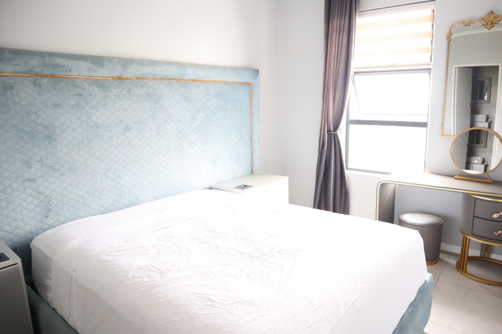 Both bedrooms are generously sized, fitted with built-in cupboards and premium furnishings. The main bedroom includes an en-suite bathroom, while the second bathroom is stylishly finished to serve guests or the second bedroom with ease.