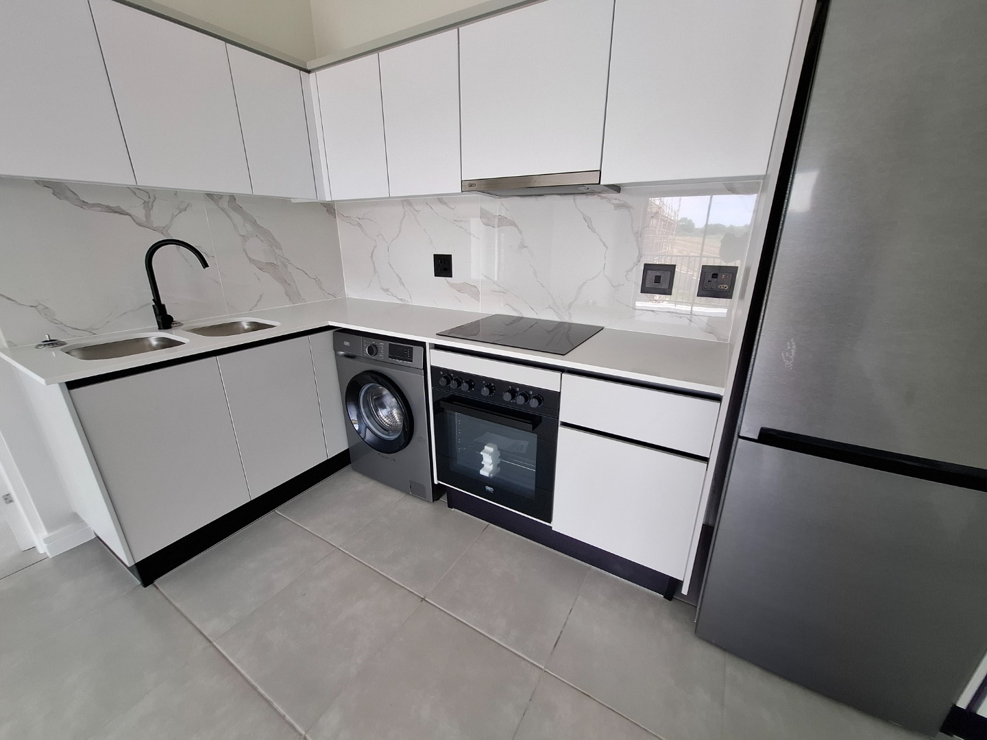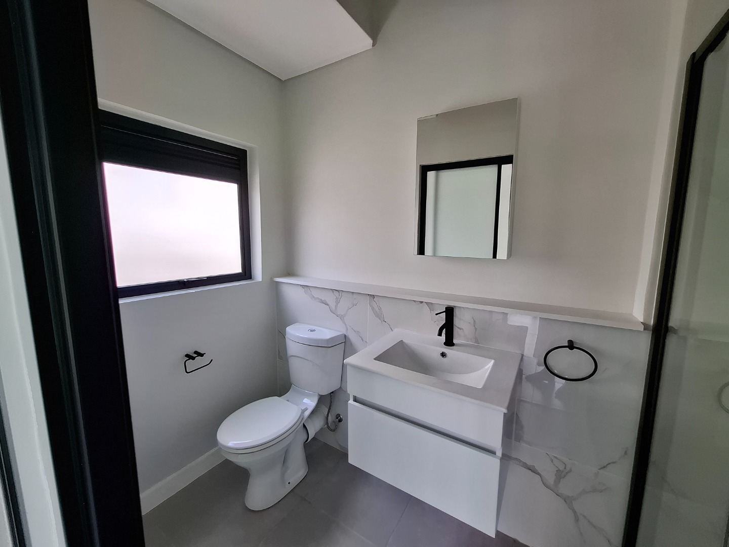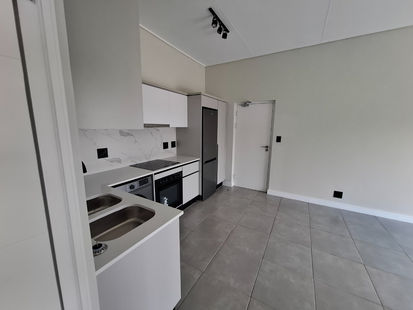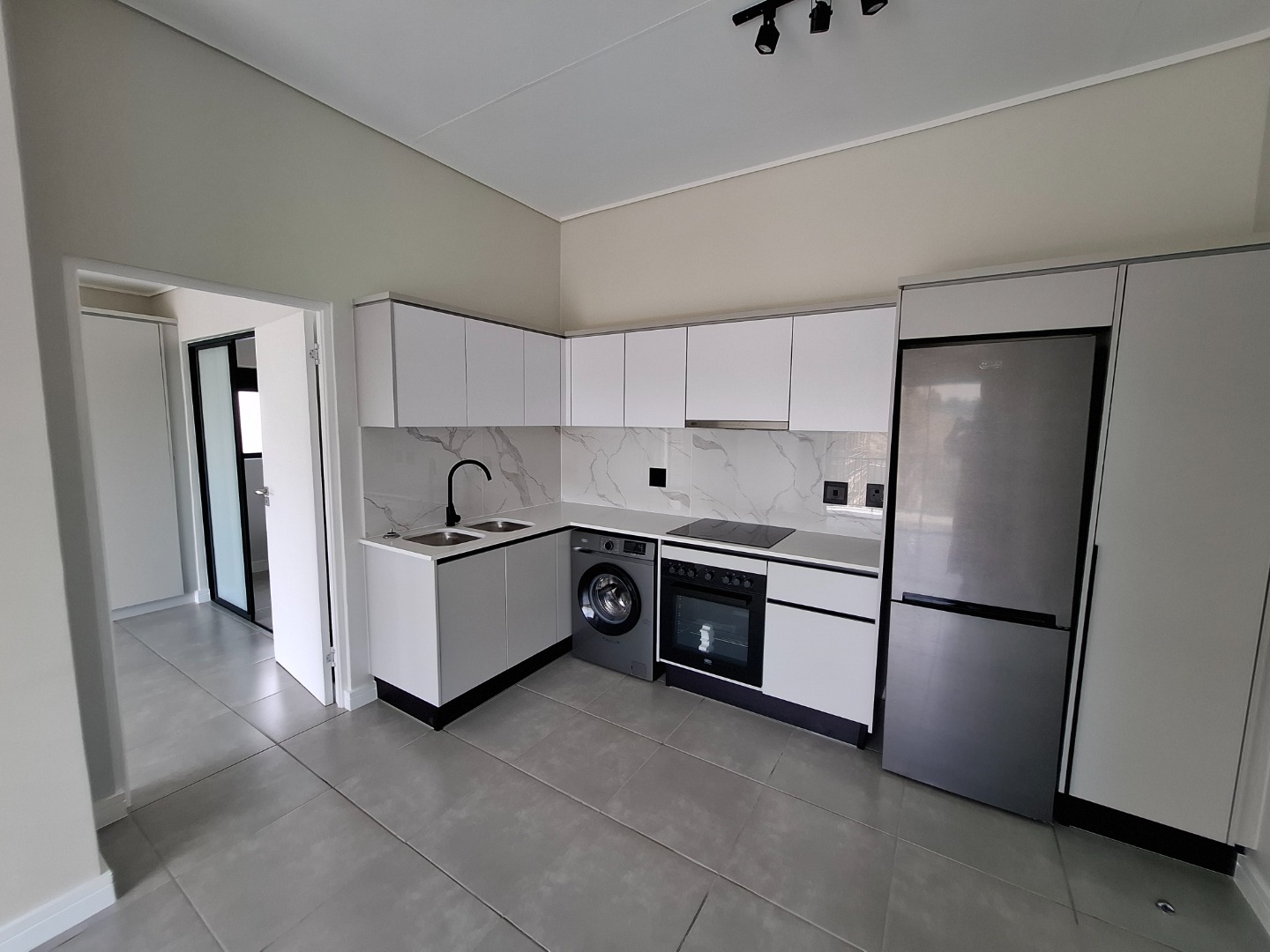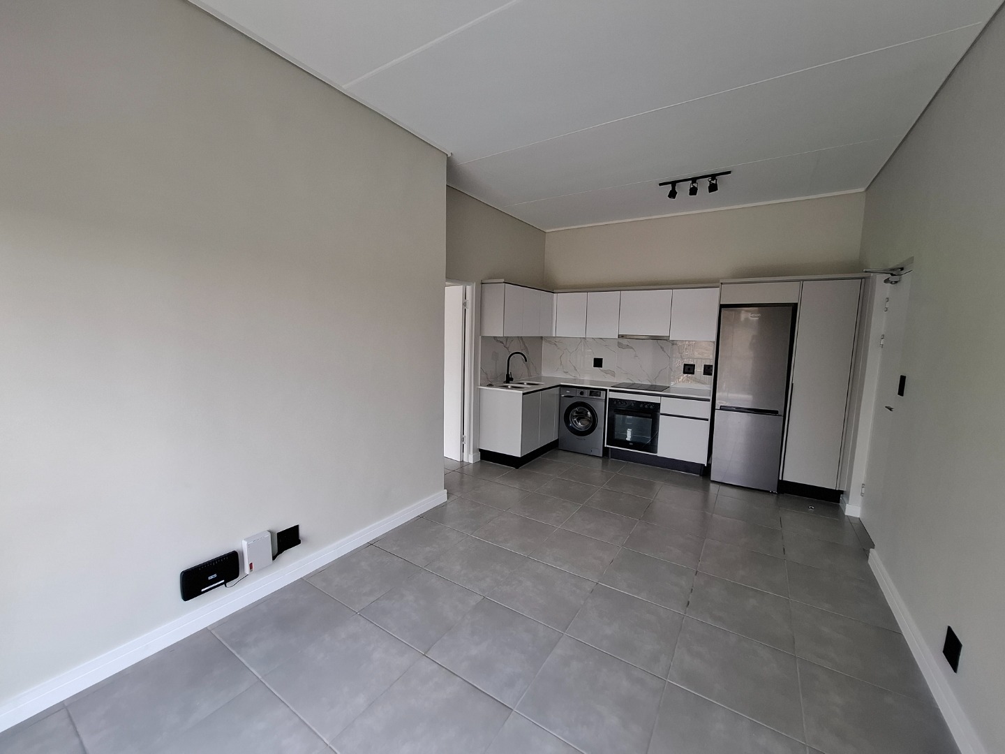 Discover modern living in this stylish 1-bedroom, 1-bathroom apartment located in a secure estate in Waterfall, Midrand. Designed for contemporary comfort, the unit features an open-plan layout that seamlessly connects the living, dining, and kitchen areas. The kitchen is a highlight, boasting sleek white cabinetry, a sophisticated marble-look backsplash, and integrated appliances including a hob, oven, washing machine, and refrigerator, ensuring a functional and aesthetically pleasing space. Throughout the apartment, light grey walls and durable grey tiled flooring create a neutral canvas, ready for your personal touch. The spacious bedroom offers a built-in wardrobe for ample storage and direct access to a private balcony through large glass sliding doors. This outdoor space provides expansive scenic views, perfect for enjoying morning coffee or evening relaxation. The modern bathroom is equally impressive, fitted with contemporary fixtures, a walk-in shower, and a floating vanity, reflecting a clean and minimalist design. With pets allowed, this apartment caters to a comfortable lifestyle for individuals or couples. Residents benefit from living within a security estate, complete with 24-hour security for peace of mind. The complex also offers access to a clubhouse, enhancing the lifestyle amenities available. Fibre connectivity is installed, providing high-speed internet for work or entertainment. One dedicated parking bay is included, adding to the convenience. Waterfall, Midrand, is a sought-after area known for its modern developments and strategic location, offering easy access to major routes and amenities. This property presents an excellent opportunity for those seeking a secure, convenient, and contemporary rental home in a vibrant South African city. Key Features: * 1 Bedroom, 1 Bathroom * Modern Kitchen with Integrated Appliances * Open-Plan Living and Dining Area * Spacious Balcony with Scenic Views * Secure Estate with 24-Hour Security * Fibre Ready * Access to Clubhouse * 1 Parking Bay * Pets Allowed