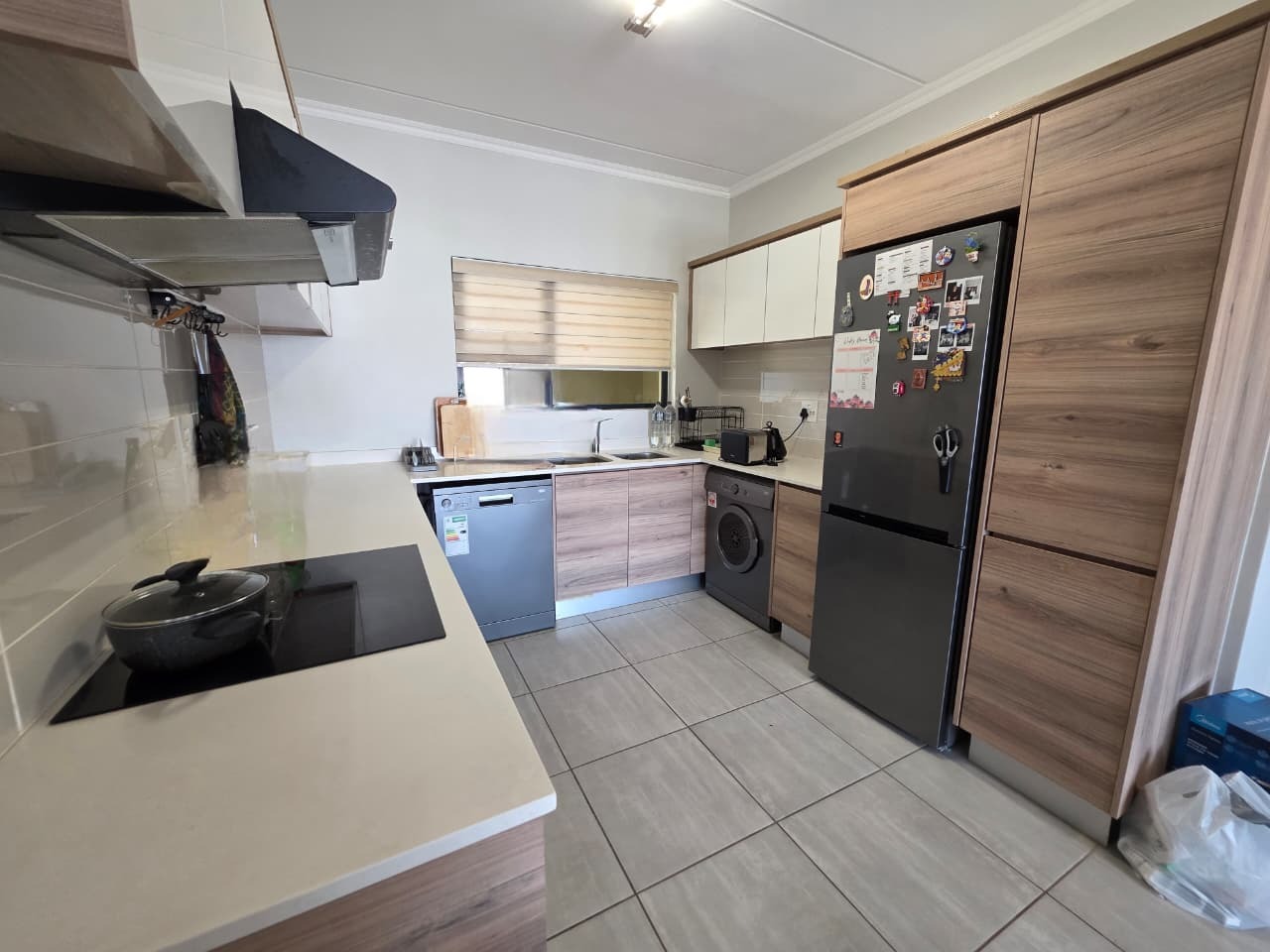 Check out this super stylish and comfy 2-bedroom, 2-bathroom apartment available for rent in the lovely Waterfall area of Midrand. With a spacious 107 sqm, this place offers a fantastic open-plan layout that seamlessly connects the lounge, dining area, and a really modern kitchen. You'll love the kitchen's two-tone cabinetry and all those integrated appliances like the oven, hob, dishwasher, washing machine, and even a built-in fridge – making life a breeze! The whole apartment features durable tiled flooring and gets loads of natural light, especially through the large sliding doors that lead out to your very own balcony.