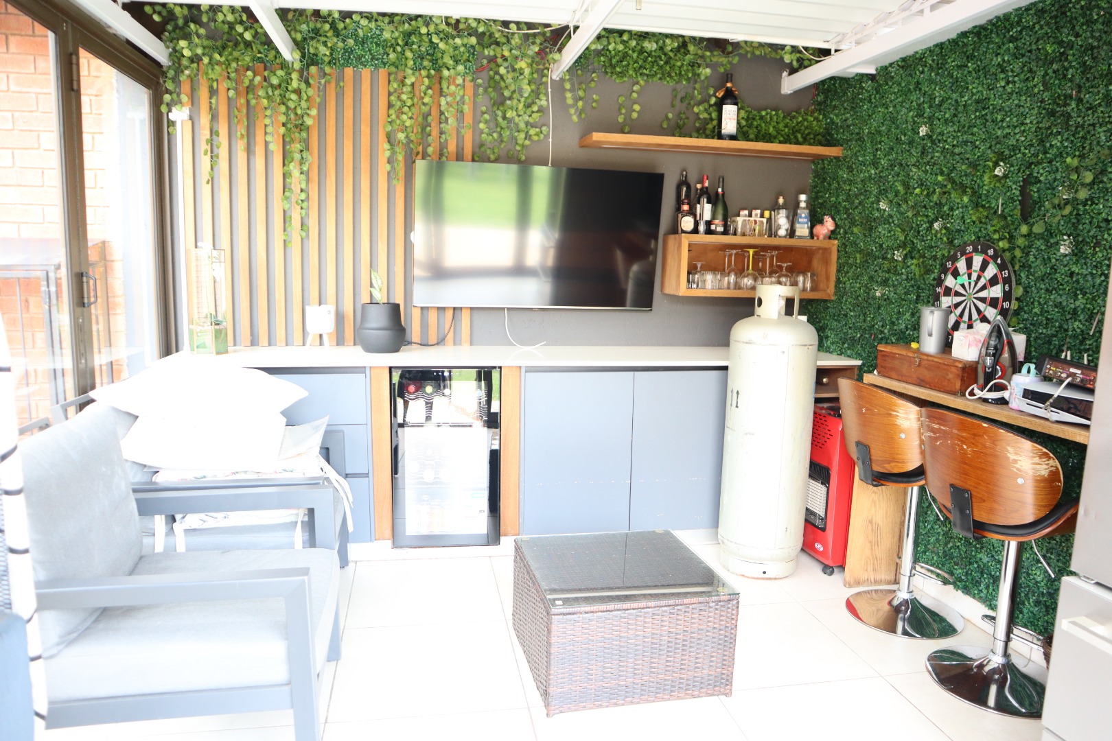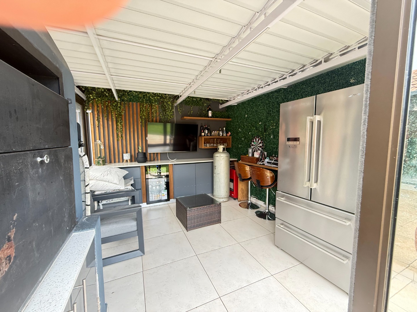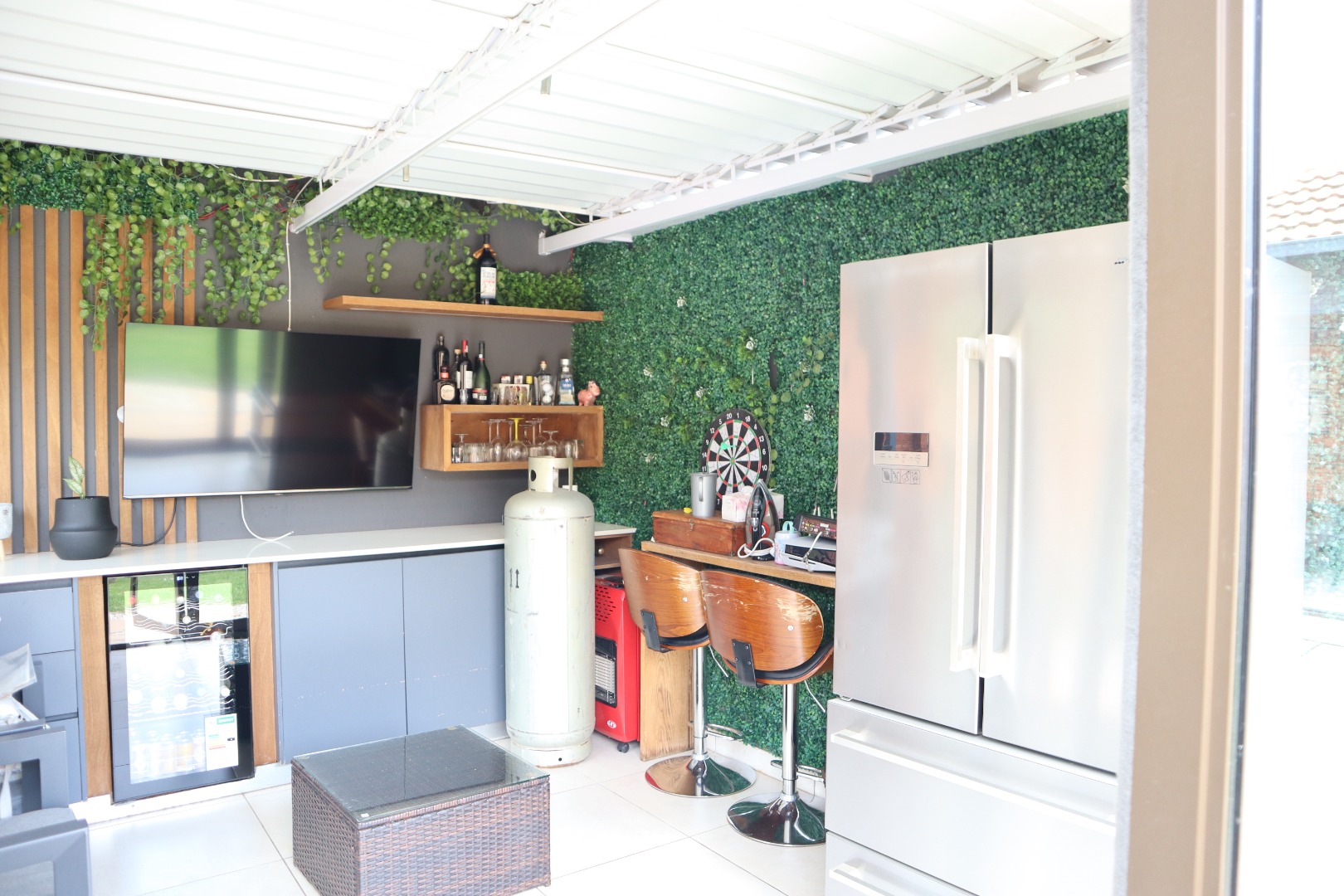 The property boasts three well-sized bedrooms and two bathrooms, making it ideal for families or professionals. The open and practical layout leads into an inviting entertainment area featuring a built-in bar, perfect for hosting guests or enjoying relaxed evenings at home.