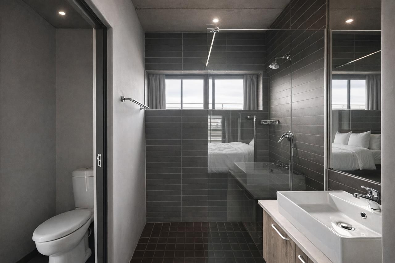 The spacious bedroom includes generous built-in cupboards, direct access to the private balcony, and a modern en-suite bathroom that is stylish, neat, and well-maintained.