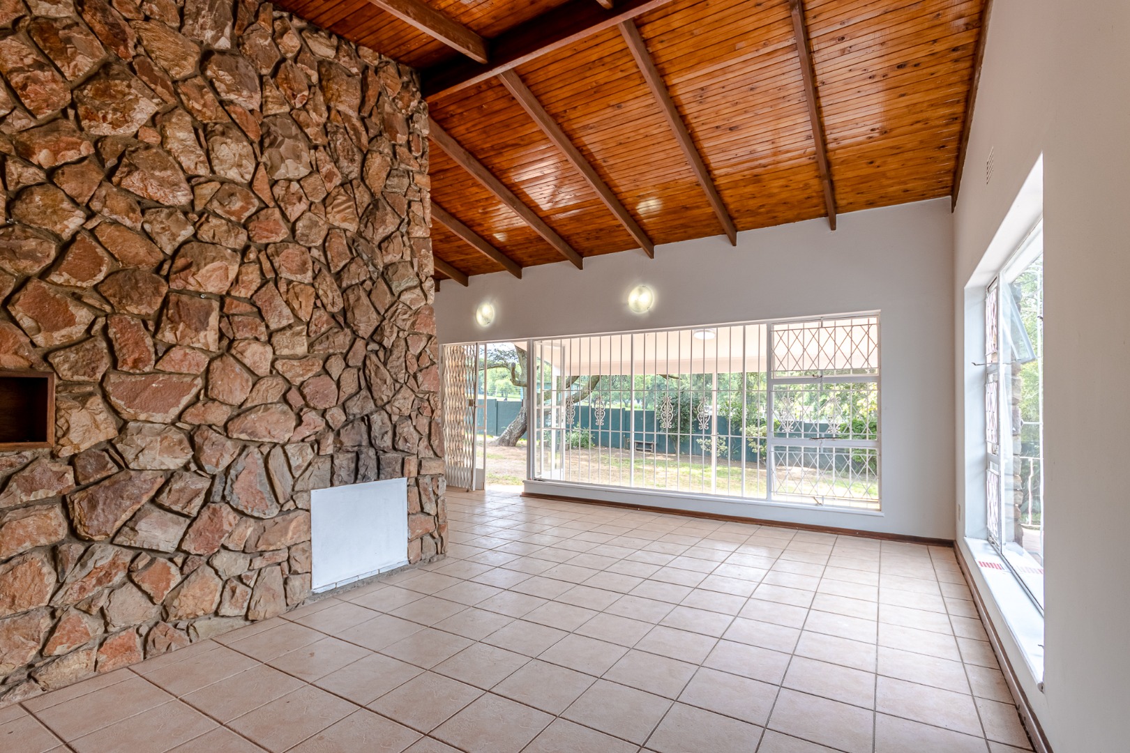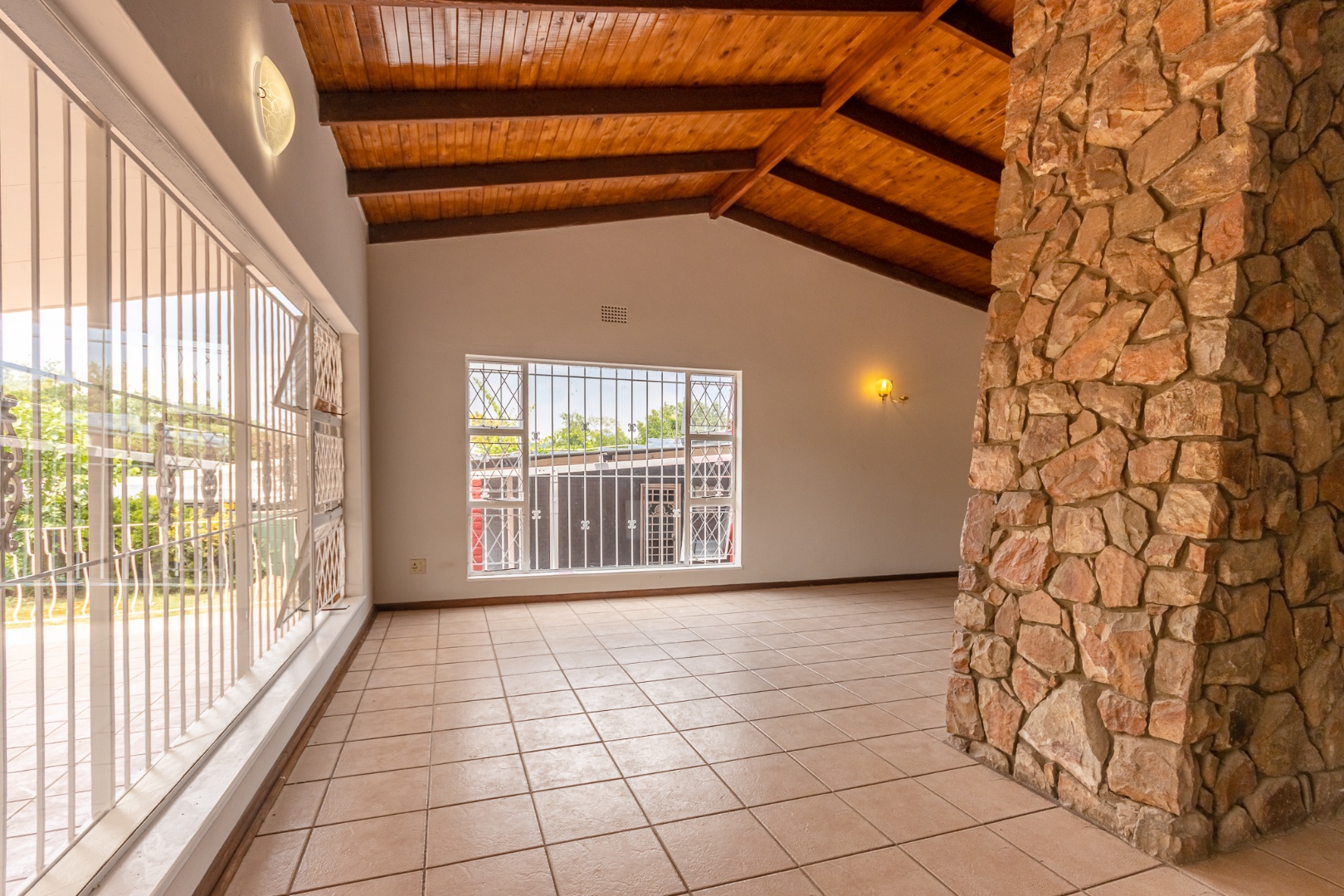 The bedrooms are comfy, and one even has its own en-suite bathroom for extra privacy. You'll love the unique character of the vaulted wooden ceilings and rustic stone accent walls in some of the living areas, adding a touch of charm. With 345 sqm of floor space on a generous 1050 sqm erf, there's plenty of room to spread out.