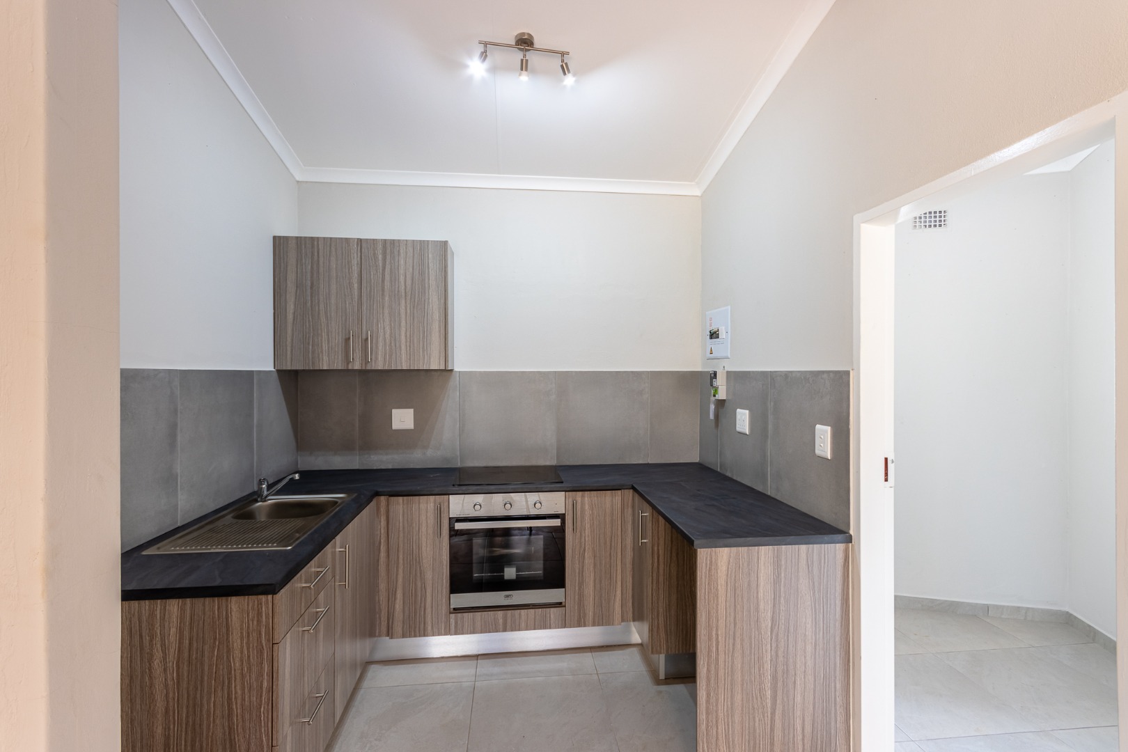 This lovely 3-bedroom, 2-bathroom home in Blairgowrie is ready for you to move in! You'll find a spacious lounge and a modern kitchen, perfect for whipping up your favourite meals. The kitchen boasts stylish wooden-look cabinets, dark countertops, and a built-in oven and hob, making cooking a breeze. The open-plan layout creates a welcoming atmosphere, and the tiled flooring throughout most of the home makes for easy living.
