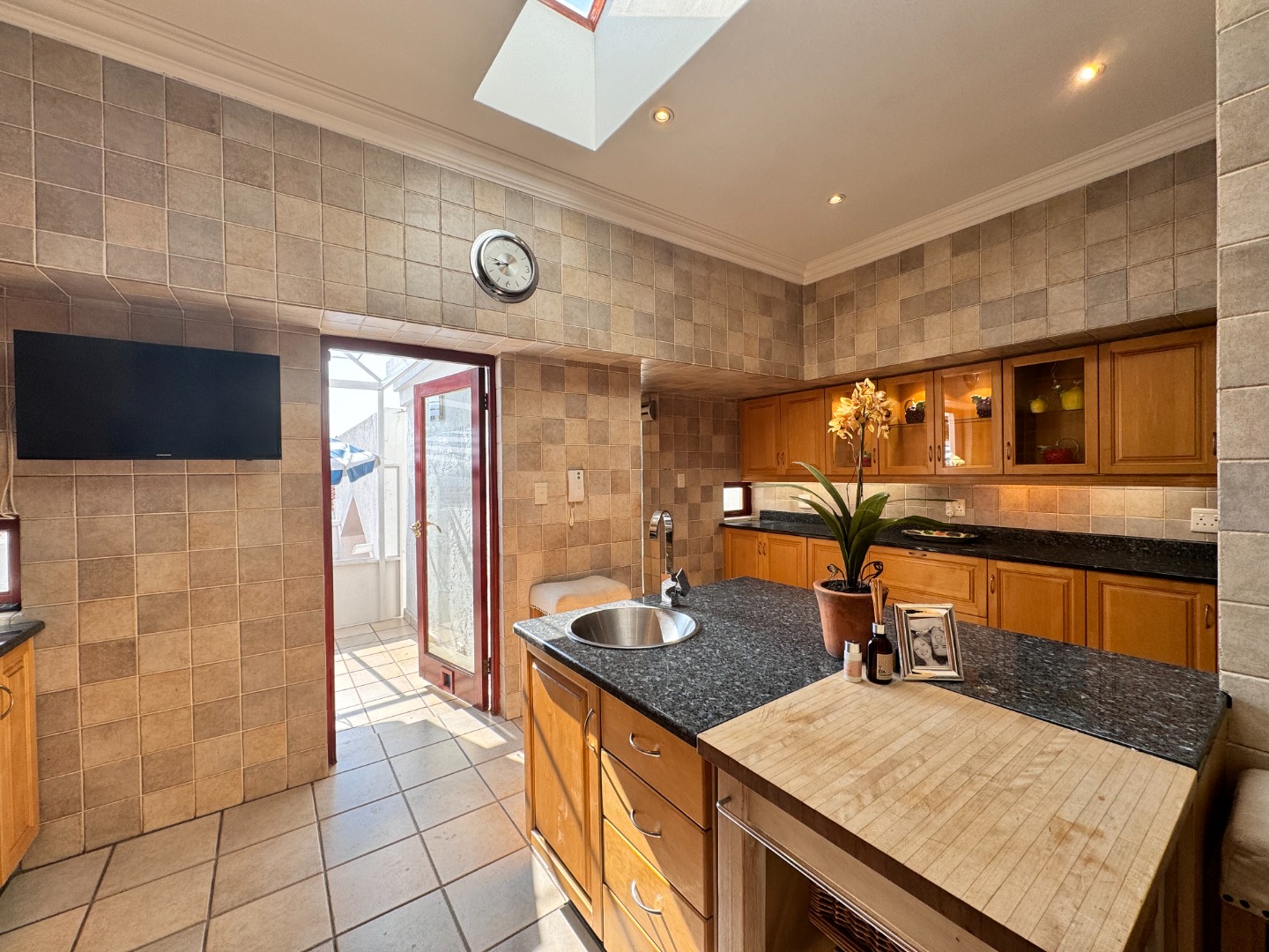 Fully equipped kitchen – working/breakfast island, scullery and pantry, outside breakfast area, gas/electric stove, double oven and microwave.