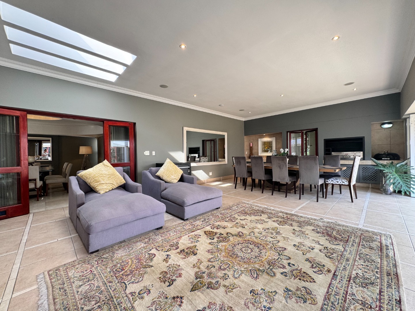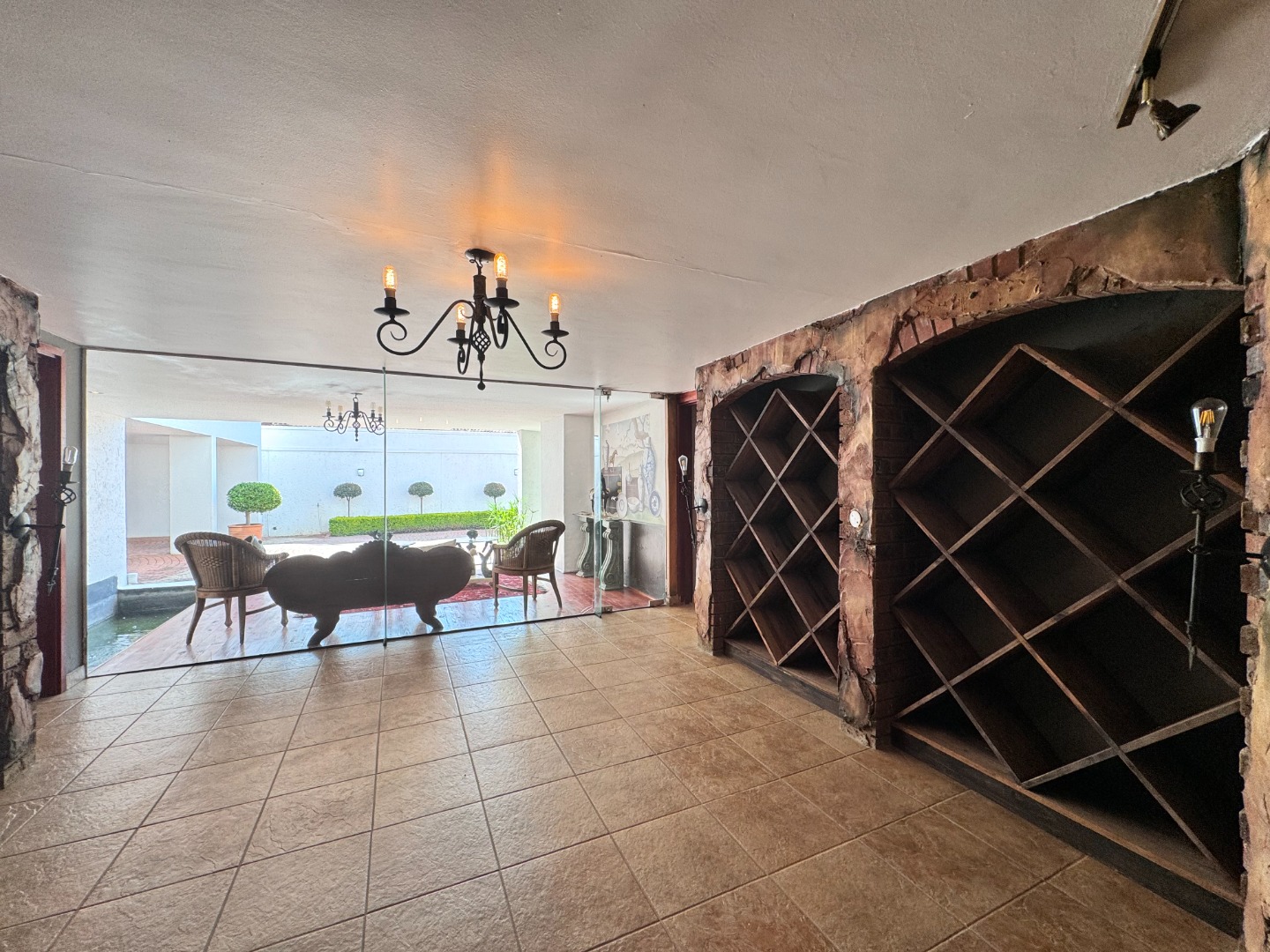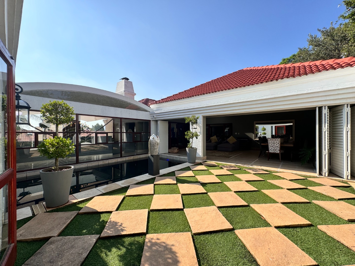 Double sized covered patio seamlessly flowing out to piazza and swimming pool then into the bar area (direct staircase down to massive wine cellar), and tv room.