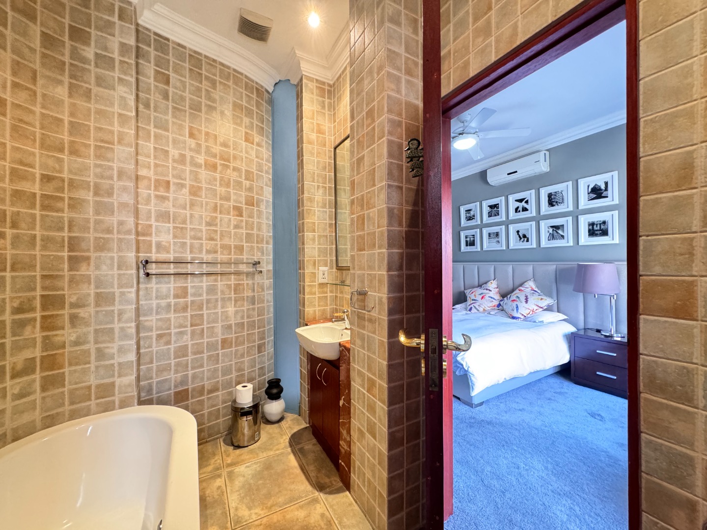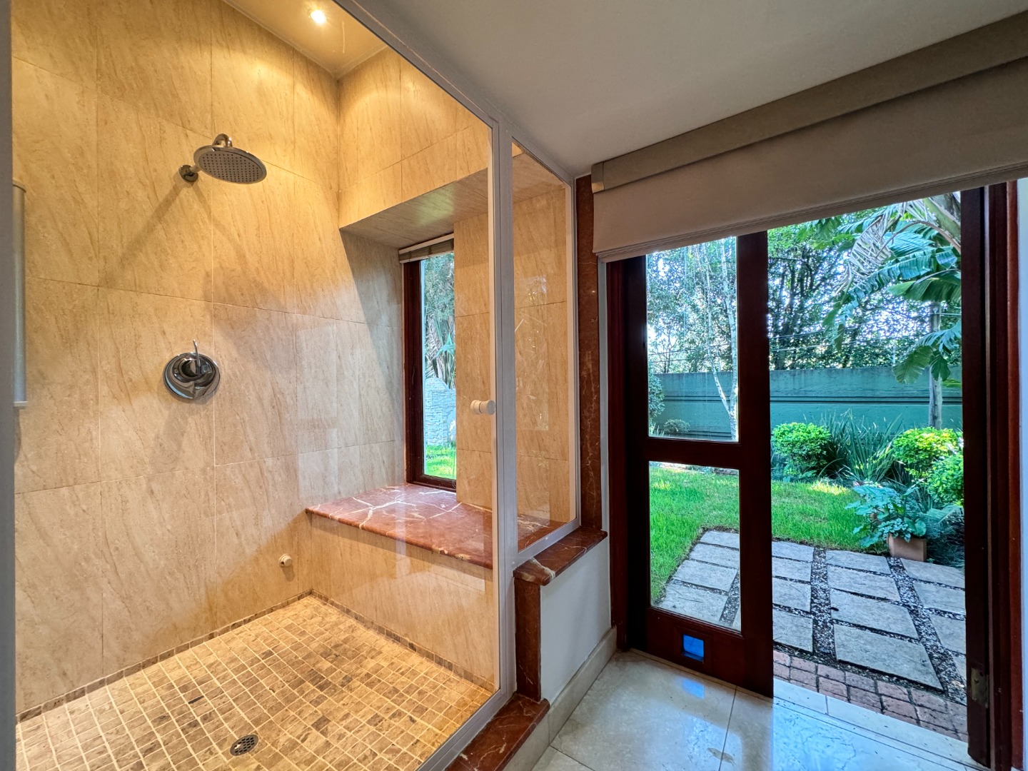 3 bedroom suites – royal master bedroom with large study, double bedroom with central air-conditioning leading out to private, neatly manicured back garden, bathroom with walk-in dressing room – double vanities, heated towel rails and jacuzzi bath.