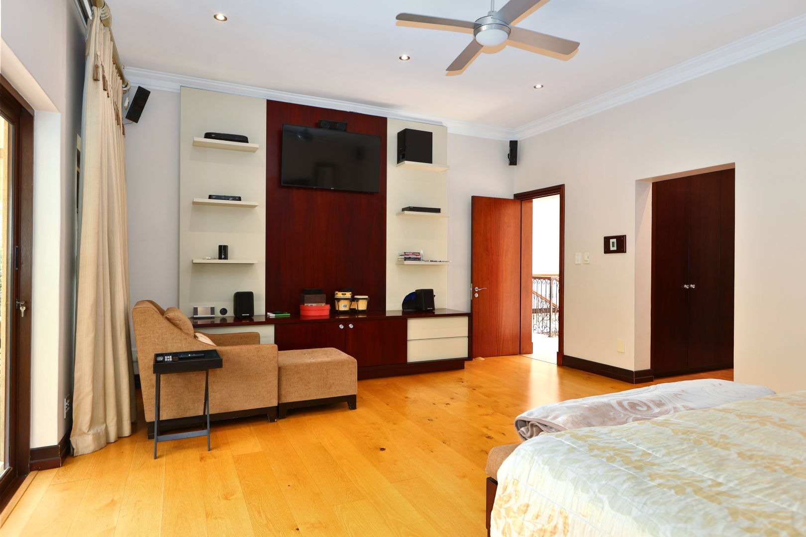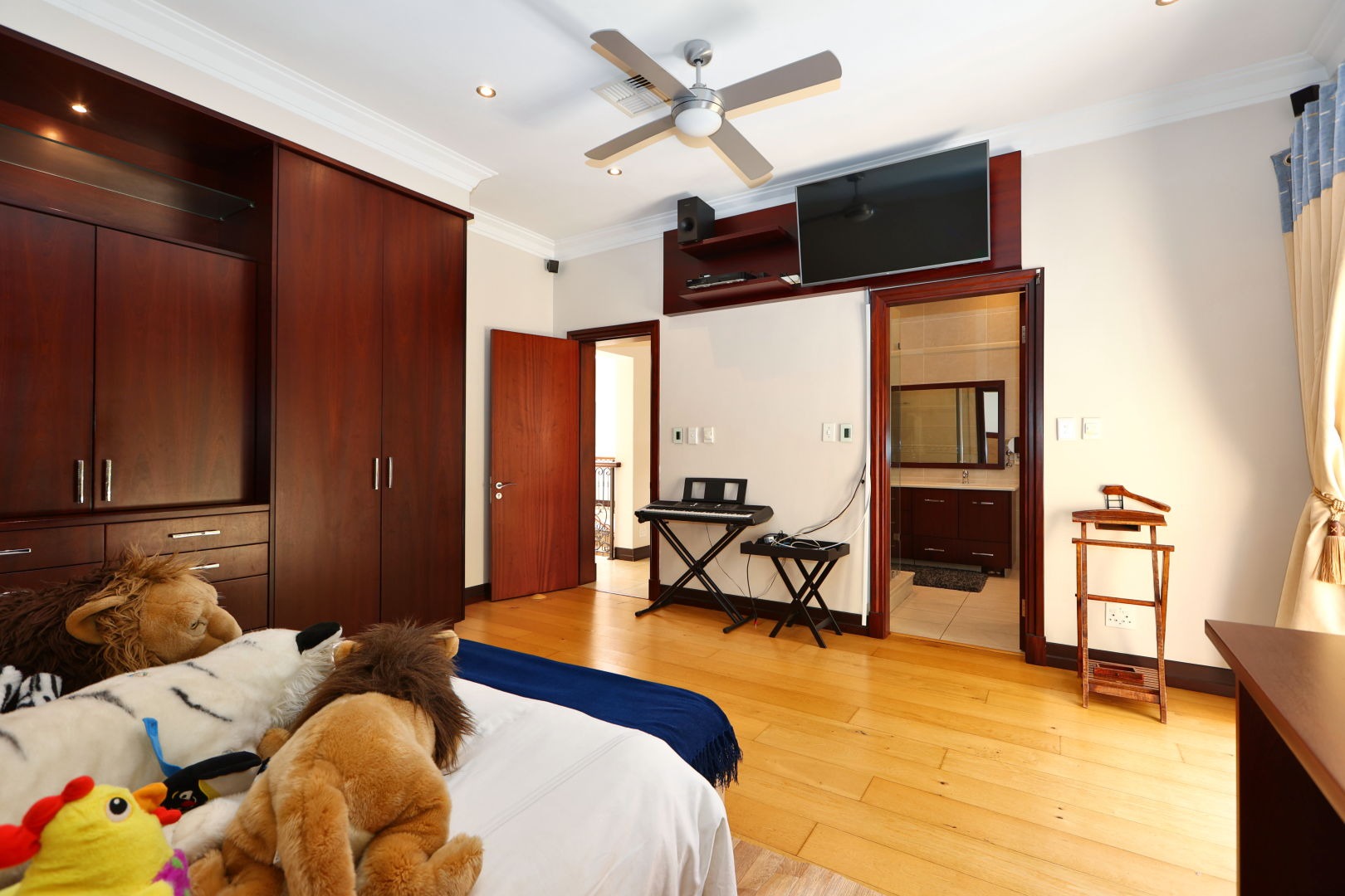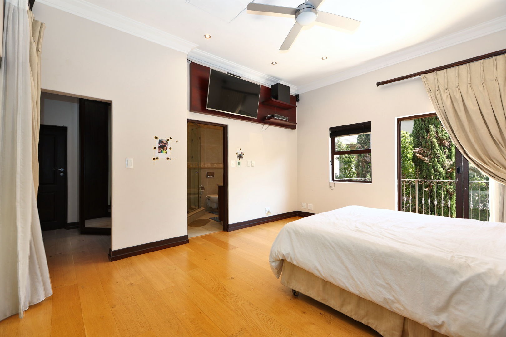 Step into a realm of refined living with this exquisite furnished residence available for rent in the prestigious Benmore Gardens, Sandton. Spanning an impressive 830 sqm under roof on a 1162 sqm erf, this grand home welcomes you through a magnificent entrance hall, revealing an expansive open-plan design. The property boasts five opulent bedrooms, each accompanied by its own luxurious en-suite bathroom, complemented by a convenient guest toilet. Entertain with grace across two sophisticated lounges, a dedicated dining room, and a comfortable family TV room. The heart of this home is its state-of-the-art kitchen, featuring high-end built-in appliances, dark wood cabinetry, and a substantial central island, perfect for culinary artistry. Designed for the discerning tenant, this furnished abode offers an unparalleled lifestyle. Enjoy seamless indoor-outdoor transitions to a private balcony, expansive patio, and a charming deck, ideal for al fresco dining or tranquil relaxation amidst scenic views. A dedicated study provides a quiet sanctuary for work or contemplation, while staff quarters, a laundry, and a pantry ensure effortless household management. With air conditioning throughout and a central vacuum system, comfort and convenience are paramount. Pets are welcome, making this an ideal family residence. Nestled within a highly sought-after security estate and gated community, this property offers ultimate peace of mind. Benefit from 24-hour security, CCTV surveillance, an alarm system, electric fencing, and secure access gates. The home is fibre-ready, ensuring high-speed connectivity, and features water tanks and an irrigation system for efficient garden maintenance, reflecting a commitment to modern living. This prime location offers unparalleled access to elite schools, world-class shopping, and vibrant business hubs, ensuring a lifestyle of convenience and prestige. Key Features: * Five en-suite bedrooms plus guest toilet * Furnished with elegant appointments * Modern kitchen with high-end appliances * Multiple living areas including family TV room * Dedicated study and staff quarters * Balcony, patio, deck, and private garden * Secure estate living with 24-hour security * Fibre-ready and air-conditioned throughout