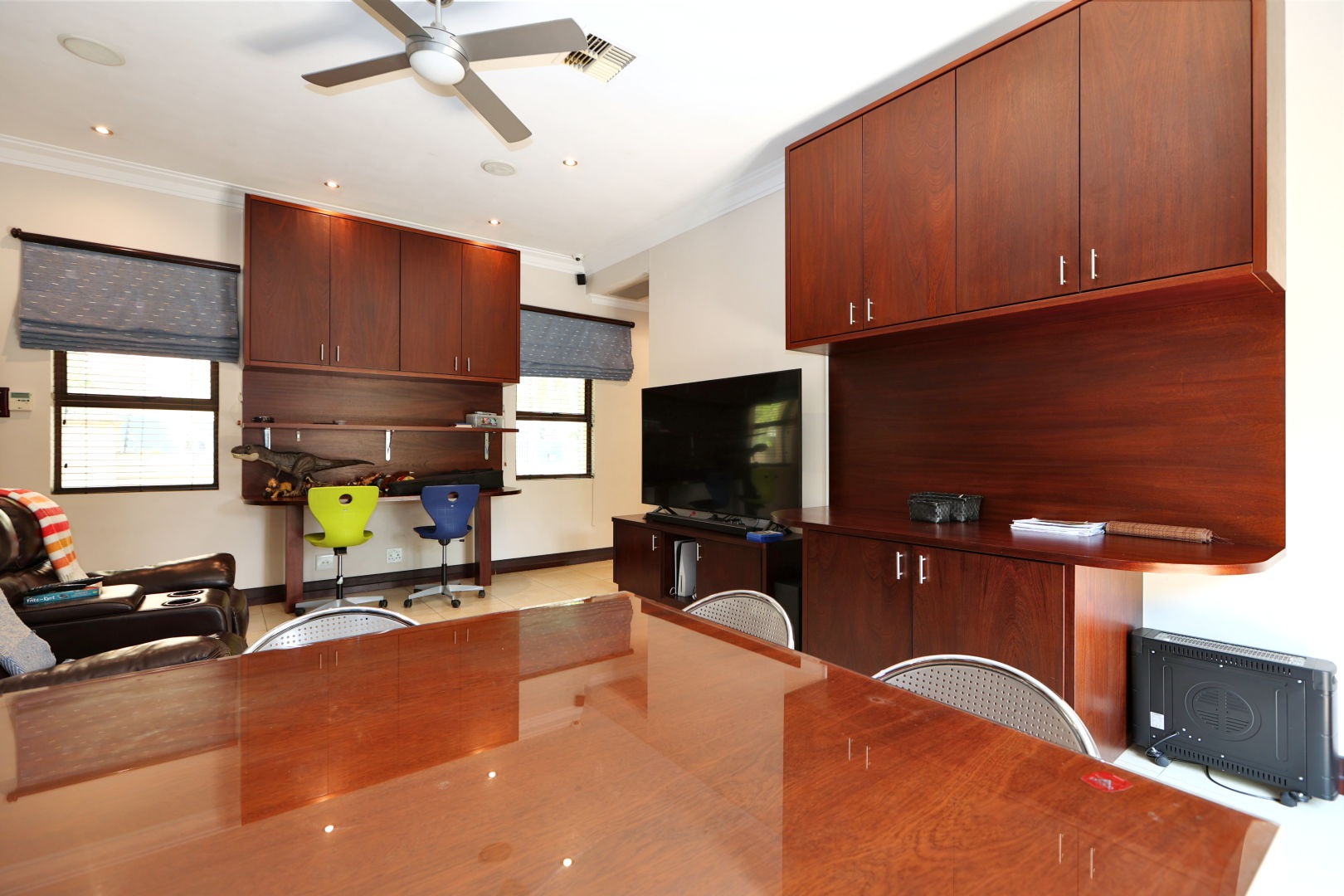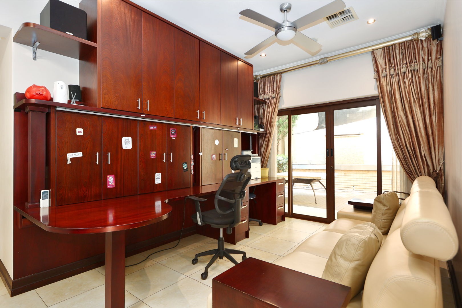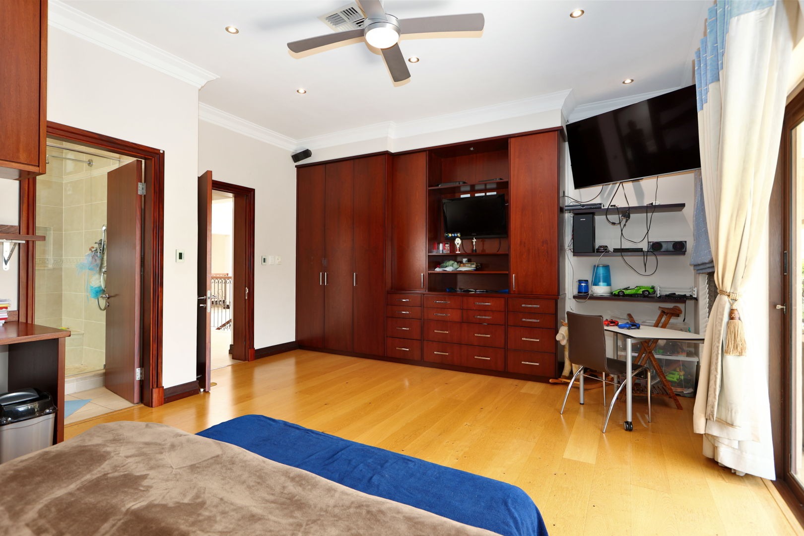 Step into a realm of refined living with this exquisite furnished residence available for rent in the prestigious Benmore Gardens, Sandton. Spanning an impressive 830 sqm under roof on a 1162 sqm erf, this grand home welcomes you through a magnificent entrance hall, revealing an expansive open-plan design. The property boasts five opulent bedrooms, each accompanied by its own luxurious en-suite bathroom, complemented by a convenient guest toilet. Entertain with grace across two sophisticated lounges, a dedicated dining room, and a comfortable family TV room. The heart of this home is its state-of-the-art kitchen, featuring high-end built-in appliances, dark wood cabinetry, and a substantial central island, perfect for culinary artistry. Designed for the discerning tenant, this furnished abode offers an unparalleled lifestyle. Enjoy seamless indoor-outdoor transitions to a private balcony, expansive patio, and a charming deck, ideal for al fresco dining or tranquil relaxation amidst scenic views. A dedicated study provides a quiet sanctuary for work or contemplation, while staff quarters, a laundry, and a pantry ensure effortless household management. With air conditioning throughout and a central vacuum system, comfort and convenience are paramount. Pets are welcome, making this an ideal family residence. Nestled within a highly sought-after security estate and gated community, this property offers ultimate peace of mind. Benefit from 24-hour security, CCTV surveillance, an alarm system, electric fencing, and secure access gates. The home is fibre-ready, ensuring high-speed connectivity, and features water tanks and an irrigation system for efficient garden maintenance, reflecting a commitment to modern living. This prime location offers unparalleled access to elite schools, world-class shopping, and vibrant business hubs, ensuring a lifestyle of convenience and prestige. Key Features: * Five en-suite bedrooms plus guest toilet * Furnished with elegant appointments * Modern kitchen with high-end appliances * Multiple living areas including family TV room * Dedicated study and staff quarters * Balcony, patio, deck, and private garden * Secure estate living with 24-hour security * Fibre-ready and air-conditioned throughout