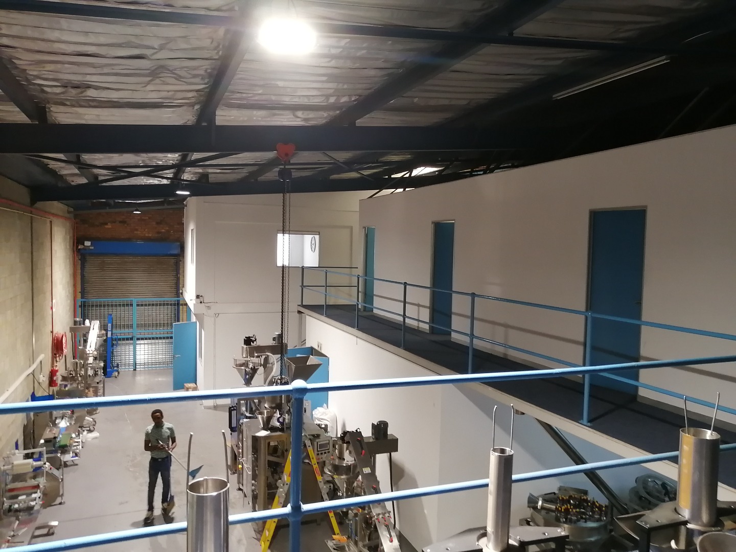 The warehouse has good height and natural light. Large roller shutter door accessing the warehouse. Access for trucks, ample parking. 3 phase power with 60 amps available. Male and female toilet facilities, kitchen and canteen area. Additional mezzanine floor, either for offices or storage area. Neat double volume offices including reception, meeting rooms and open plan. Ideal for light manufacturing, storage and distribution.