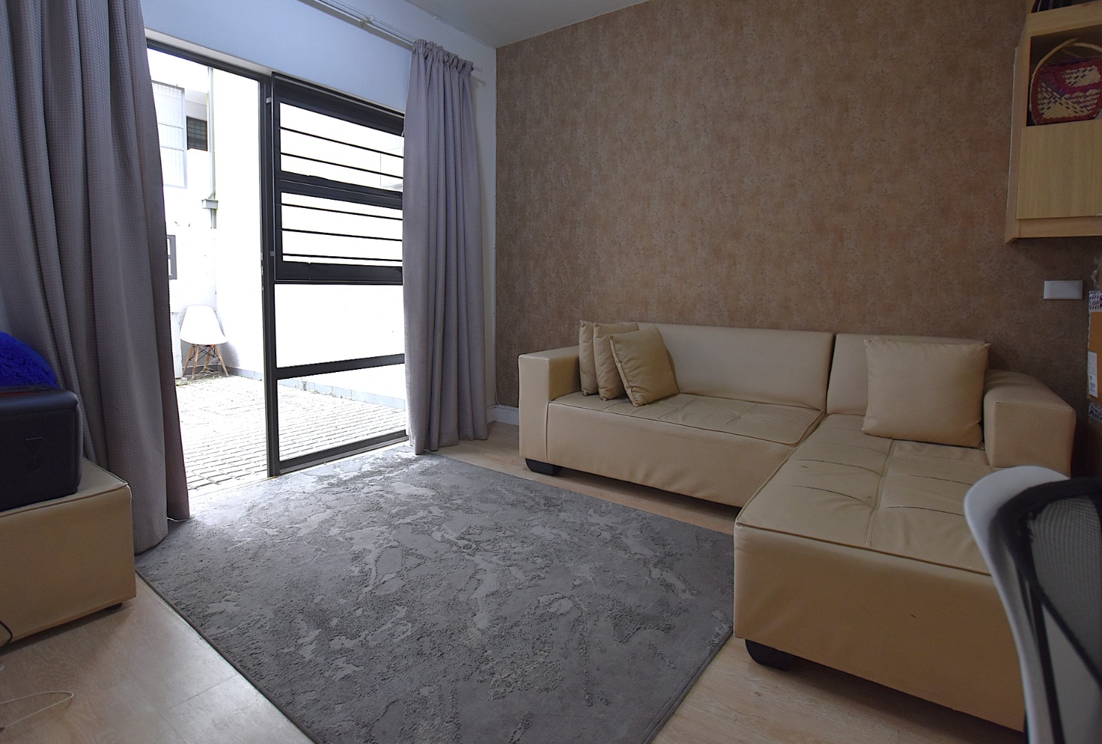 The residence offers an open plan kitchen and lounge, which opens to a generous size area outside.
