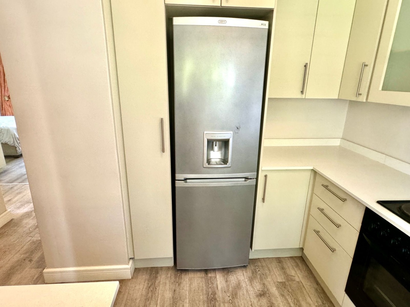 This beautifully refurbished 1-bedroom, 1-bathroom apartment is perfect for hassle-free modern living. Semi-furnished for your convenience, it includes a comfortable bed and features an open-plan living area that seamlessly flows into a secluded, modern kitchen. The kitchen comes equipped with a duo washing machine/dryer and a fridge, making life easy.