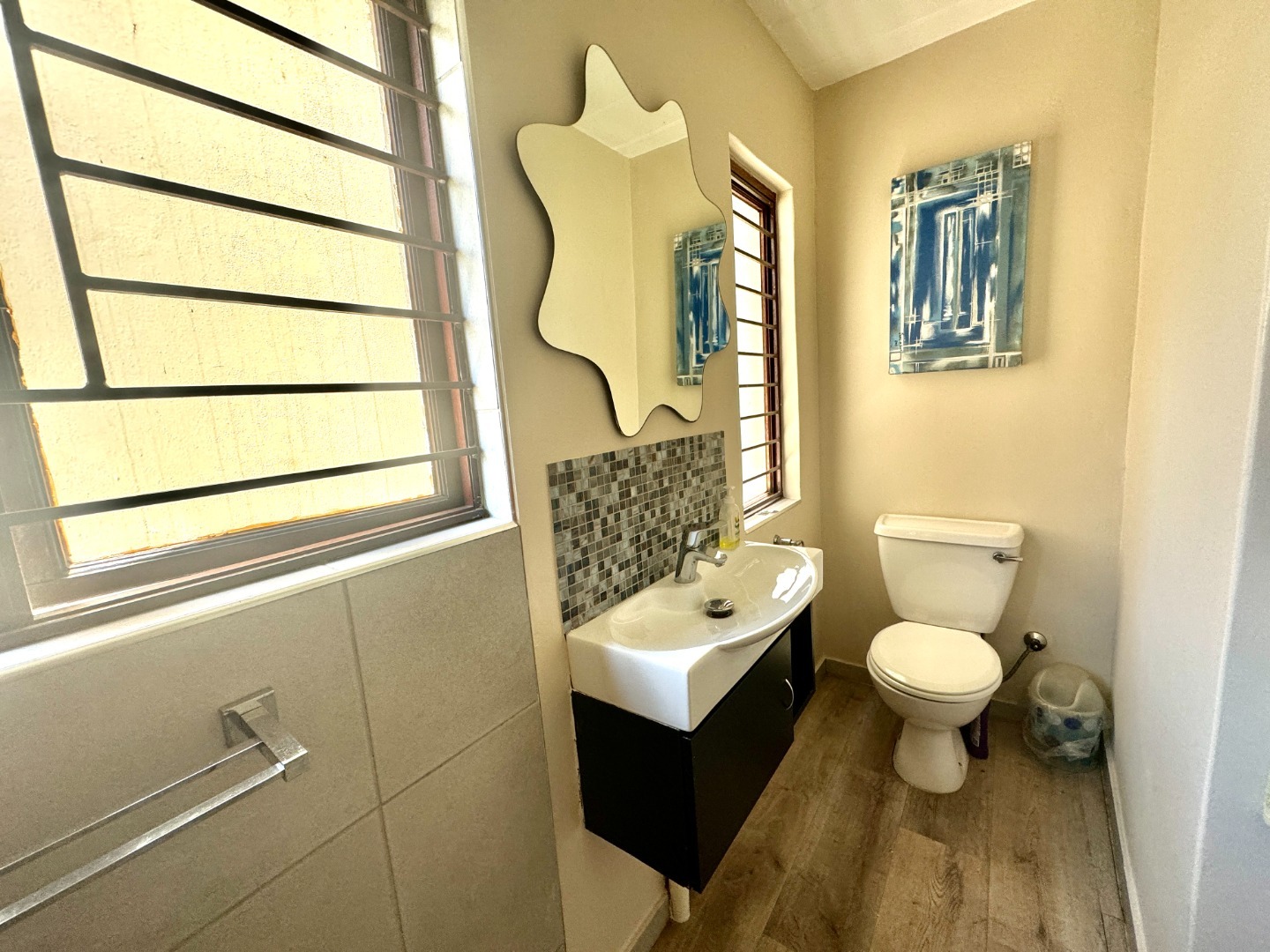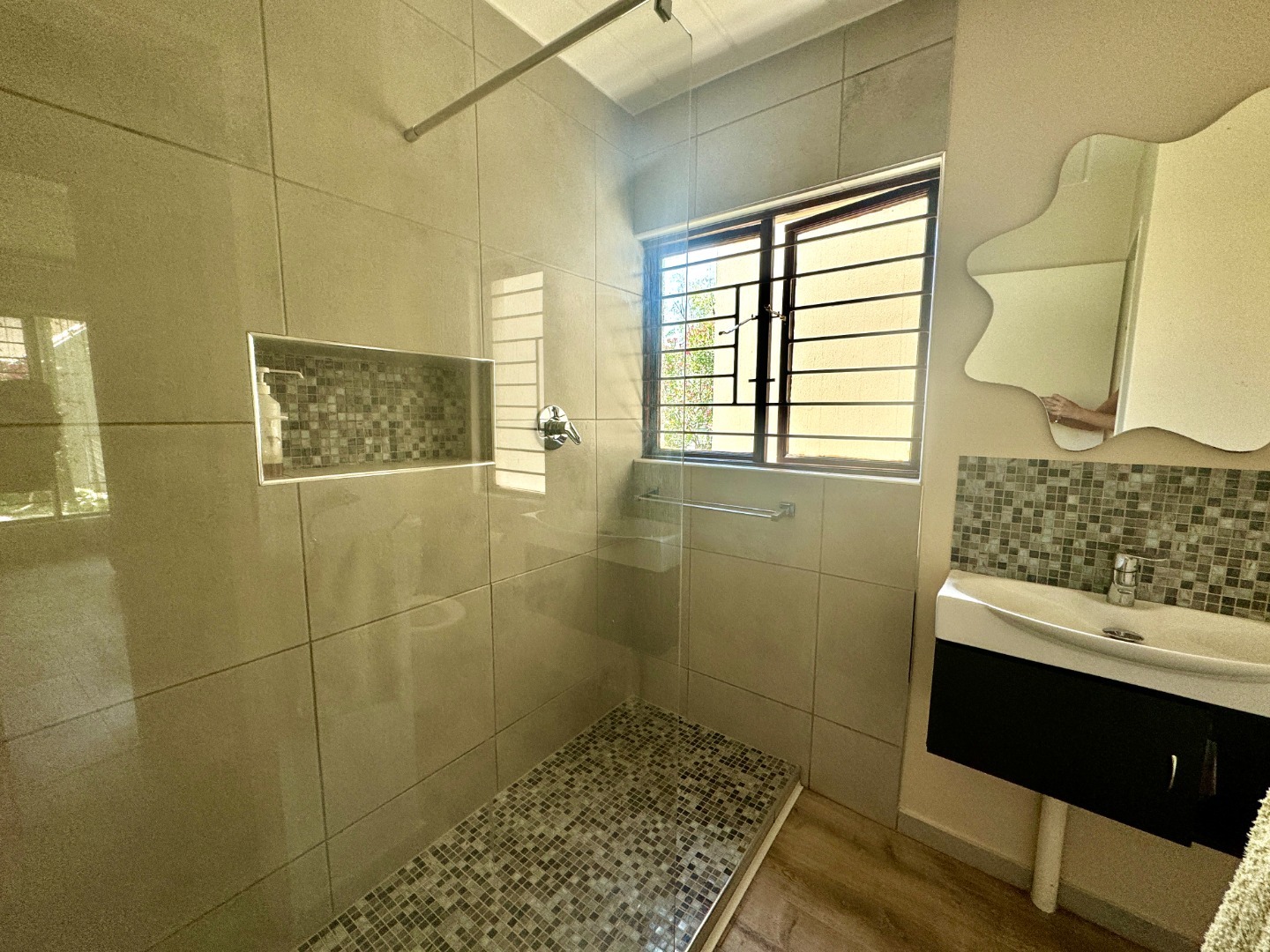 The bathroom has been stylishly redone and boasts a spacious shower for a touch of luxury. The light-filled living space opens onto a quaint patio through elegant stacker doors, offering the perfect spot to relax.