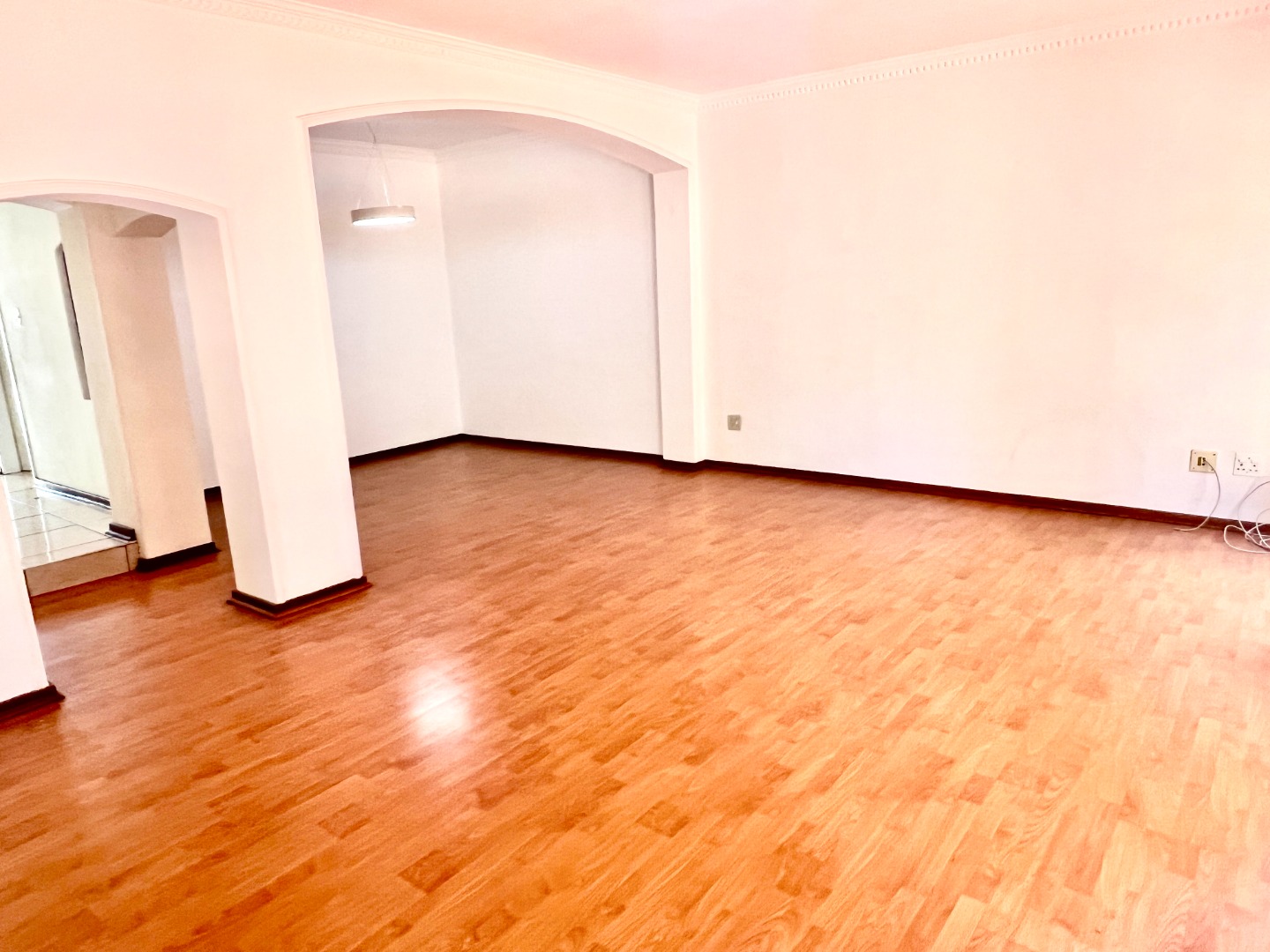 Storage space is essential in any home, and this property offers a solution with cupboard space beneath the stairs, providing ample room to store belongings. The living area is spacious enough to accommodate a lounge suite and a dining room table, making it a versatile space for both relaxation and dining. The laminated floors add a touch of elegance and are easy to maintain.