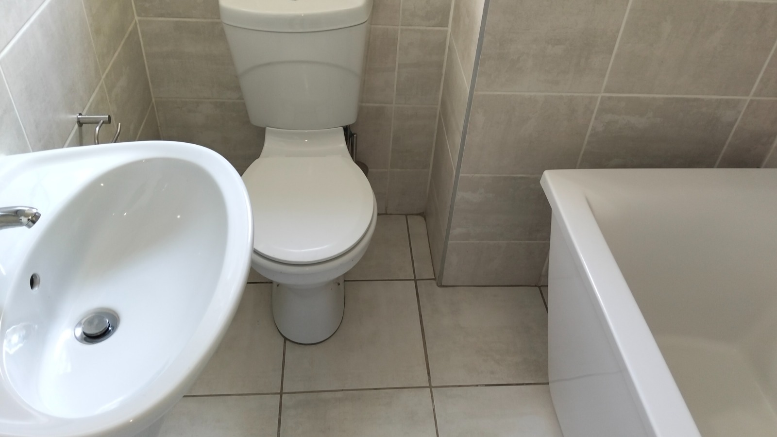 The main bedroom offers an ensuite bathroom with a bathtub, toilet, and basin, while the second bathroom includes a shower, toilet, and basin—ideal for guests or shared living. This unit is pet-friendly, making it a great choice for small families or pet owners looking for secure estate living with outdoor space.