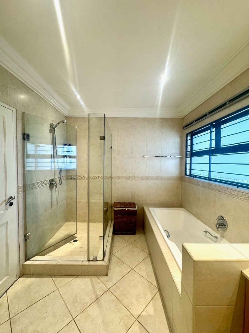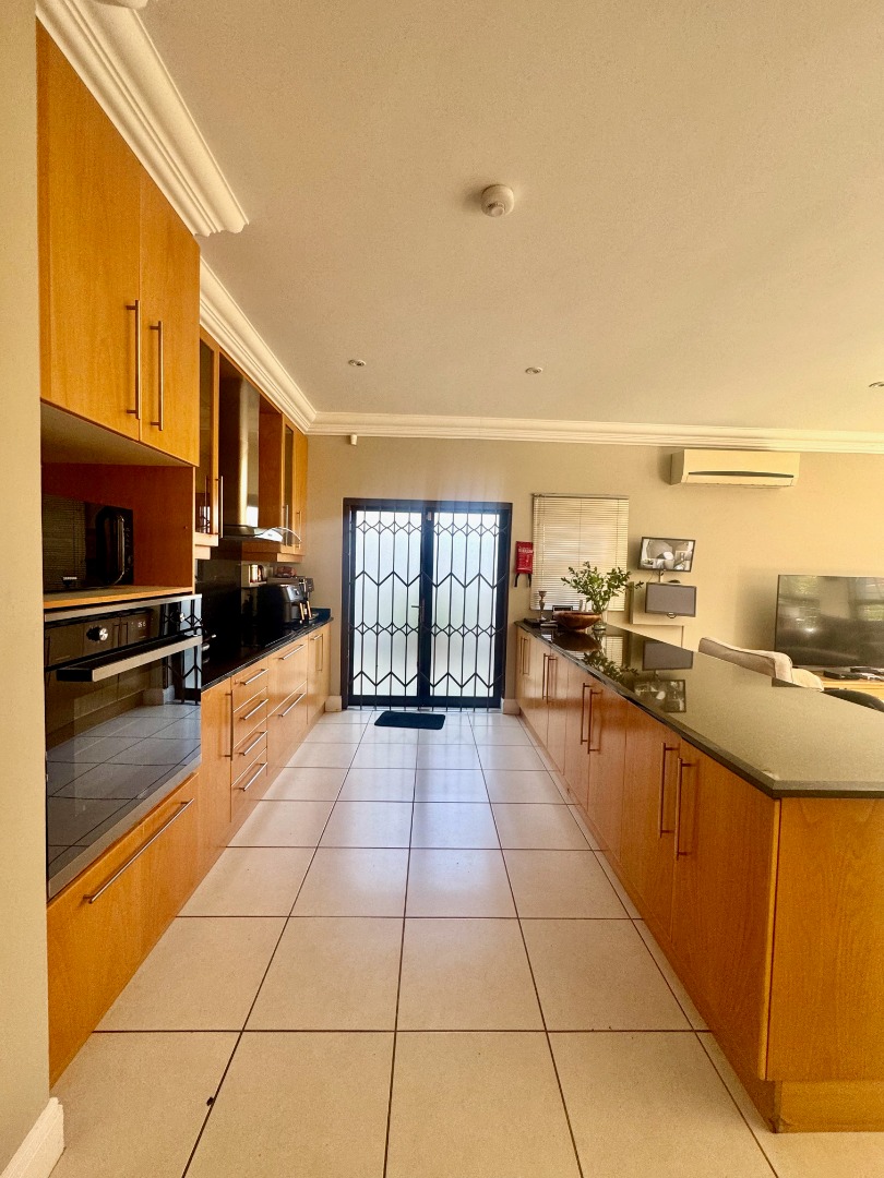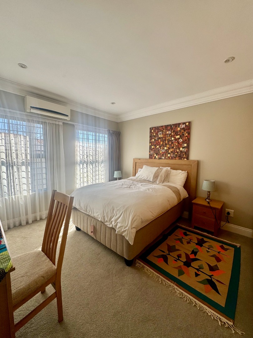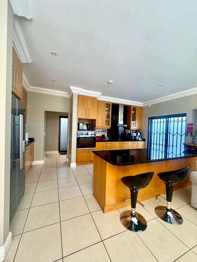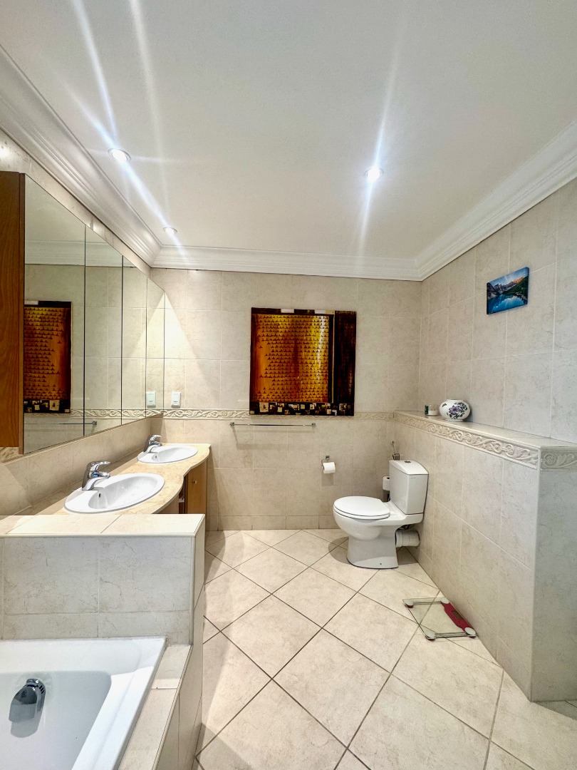 Designed for effortless living and entertaining, the home features 3 expansive reception rooms with air-conditioning and patio access, an open-plan dining room and modern granite-topped kitchen, and a separate scullery with space for 3 appliances. The covered entertainer’s patio overlooks a lush established garden and a secured gated pool, creating an ideal indoor-outdoor lifestyle.