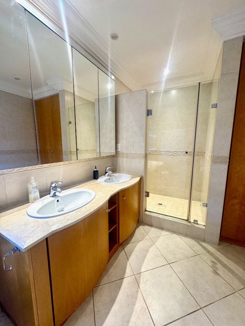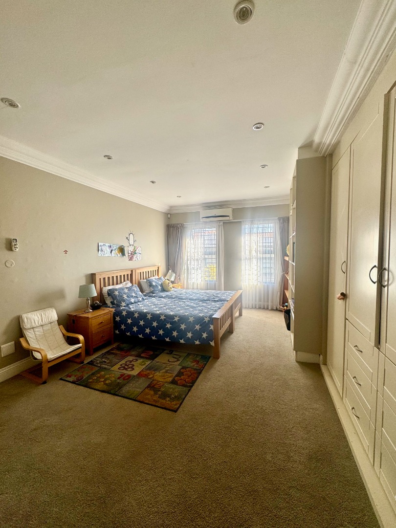 The main residence boasts 4 spacious bedrooms, all with air-conditioning. The lavish master suite includes a private balcony, luxurious walk-in closet, and a full en-suite bathroom with double vanity, bath, and shower. The other three bedrooms are generously sized and share a stylish full bathroom, with one offering a dedicated study enclave – perfect for work-from-home flexibility. A guest cloakroom adds convenience for visitors.