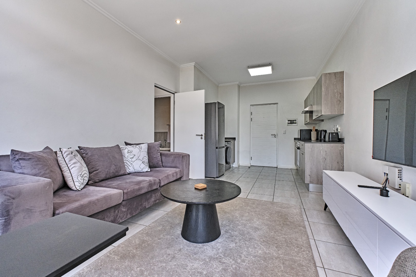 Discover an exquisite urban retreat within the prestigious confines of Edenburg, Sandton. This meticulously designed 46 square metre corner apartment epitomises modern luxury living, offering a sophisticated sanctuary for the discerning individual. The open-plan living area, bathed in abundant natural light from expansive windows and high ceilings, seamlessly integrates a chic lounge and patio with a state-of-the-art kitchen, creating an inviting space for both relaxation and entertaining.