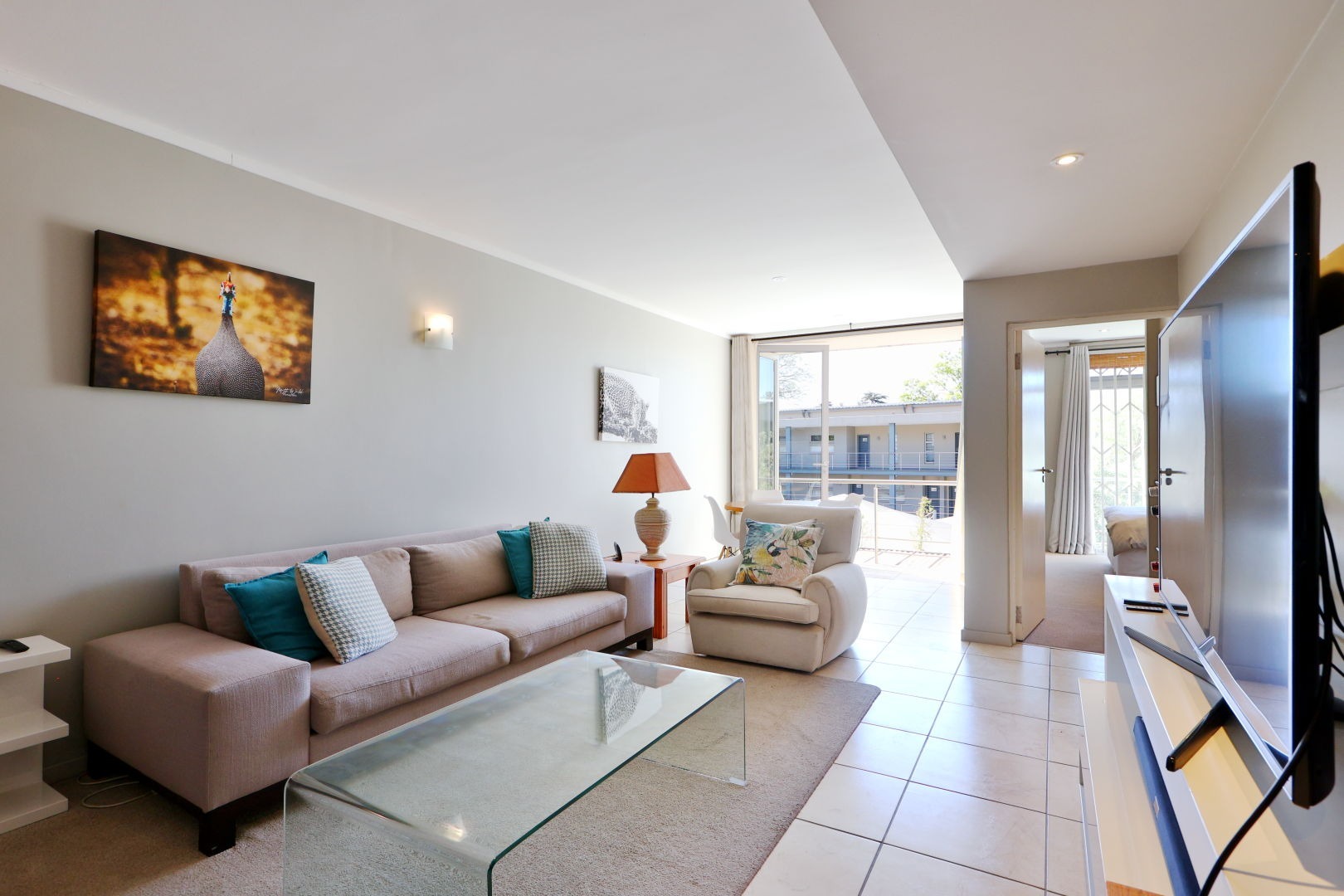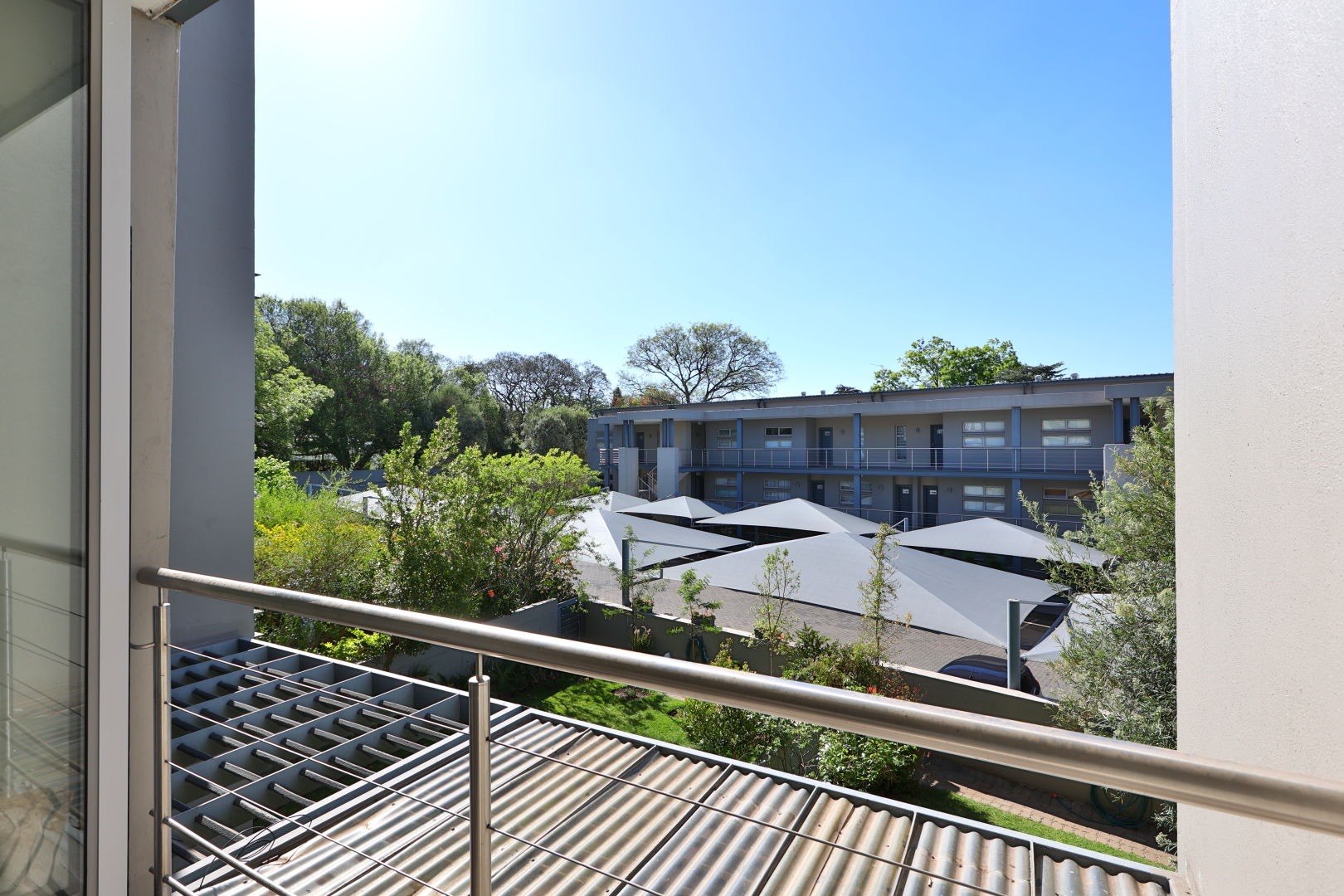 The apartment is exposed to plenty sunlight coming through the stacker doors, leading onto a balcony, where one can get some fresh air.